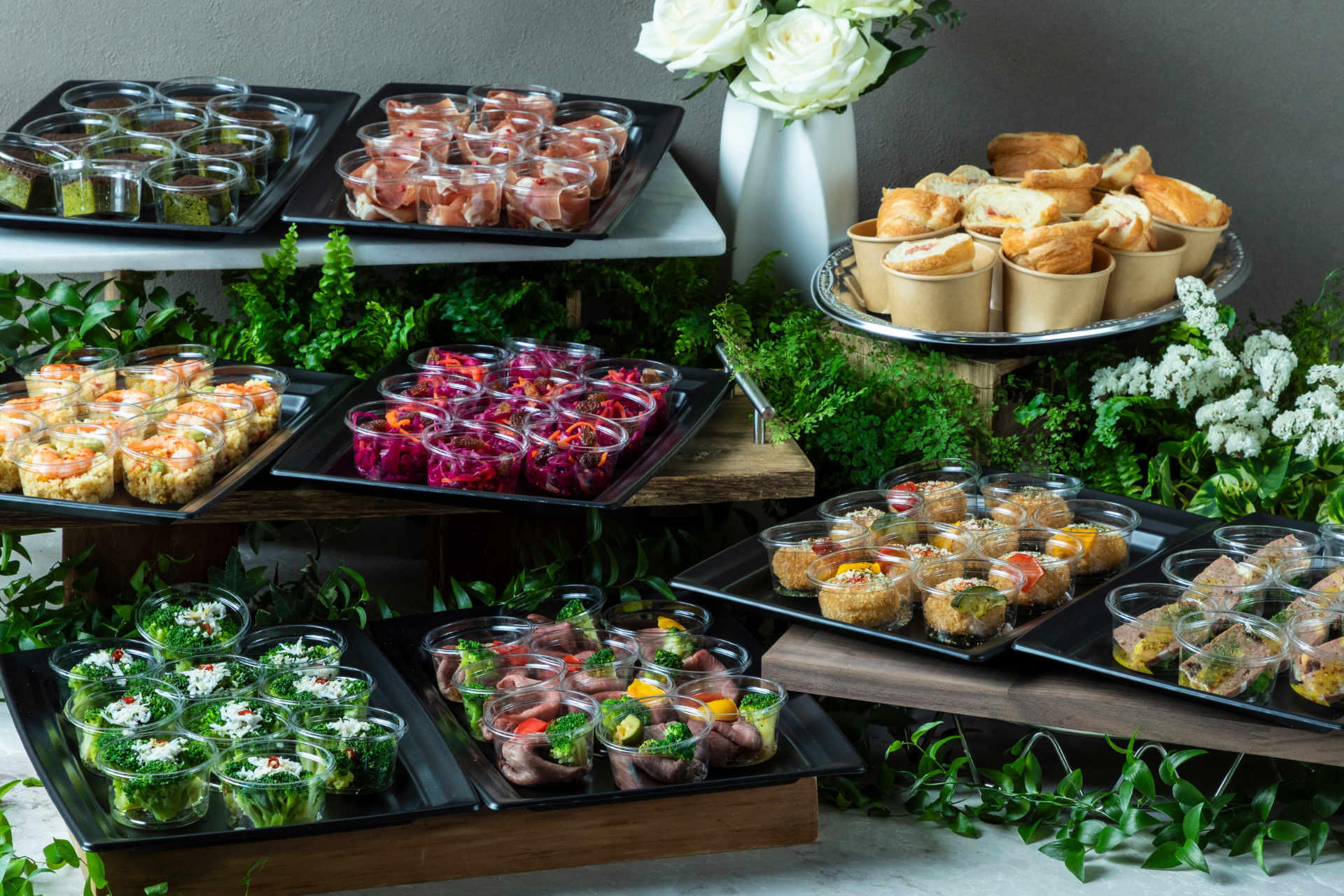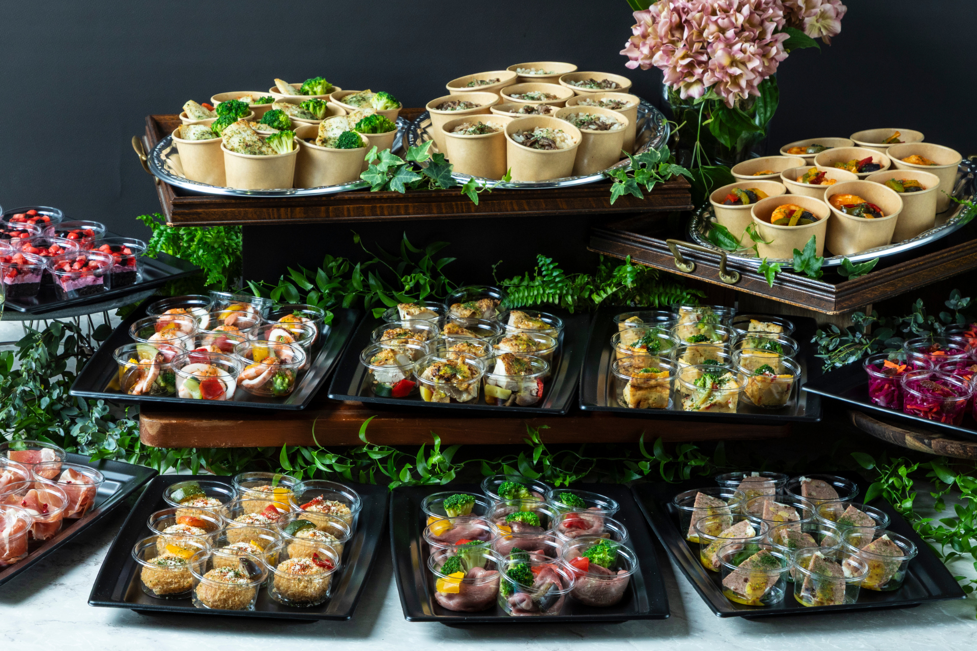 取り分けもラクラク: 盛り付け済みの状態でお届けし、取り分けやすい小分けから盛り合わせまで対応。