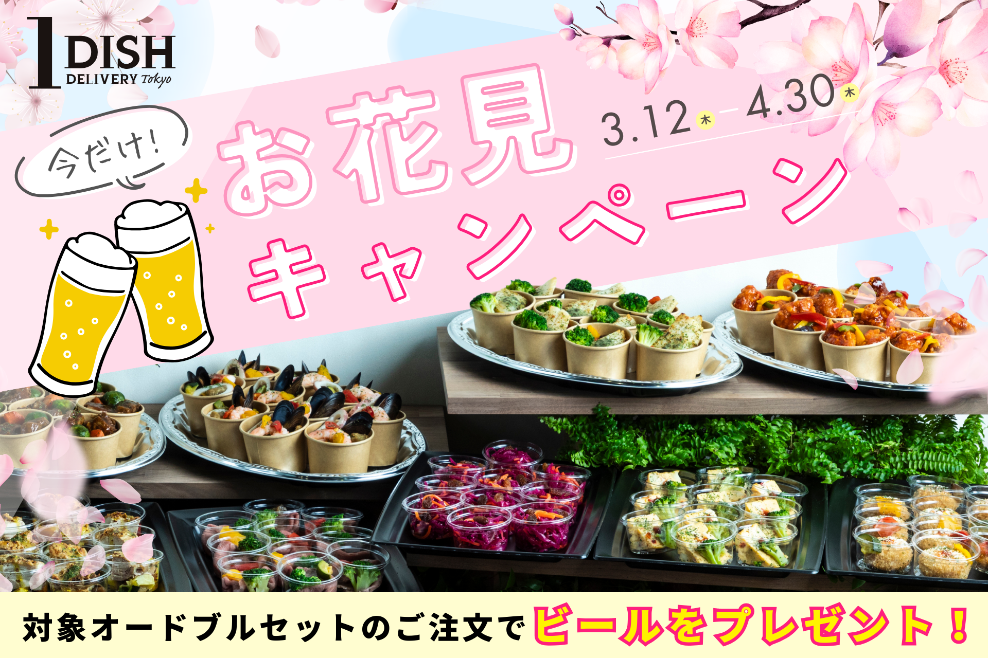 東京・横浜・大阪・名古屋・神戸・福岡を中心に、現在22都道府県対応の宅配オードブルサービス「1DISH(ワンディッシュ)」を展開する2ndTable株式会社(本社:兵庫県西宮市、代表:三原一馬)は、桜の開花時期にあわせて今年もお花見キャンペーンを開始いたします。