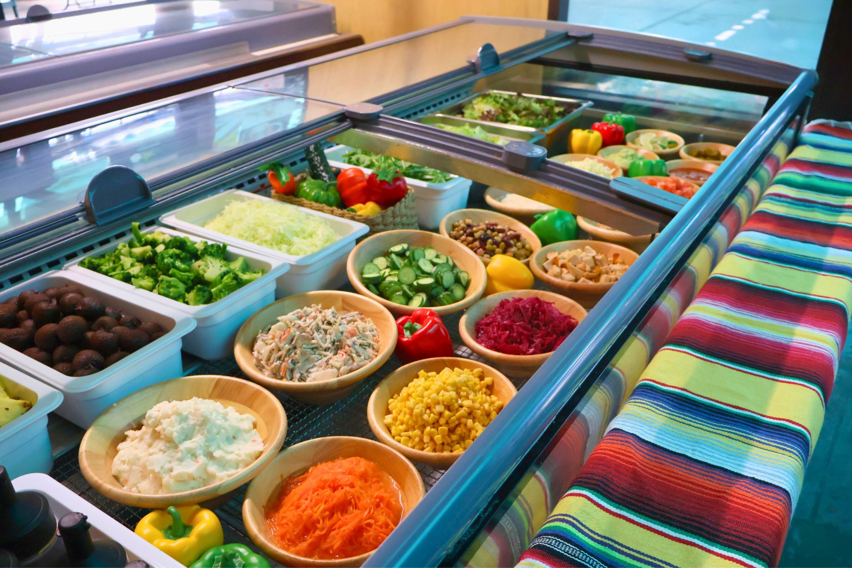 今回の注目コンテンツが、自由に作れるサラダ&タコスコーナーです。