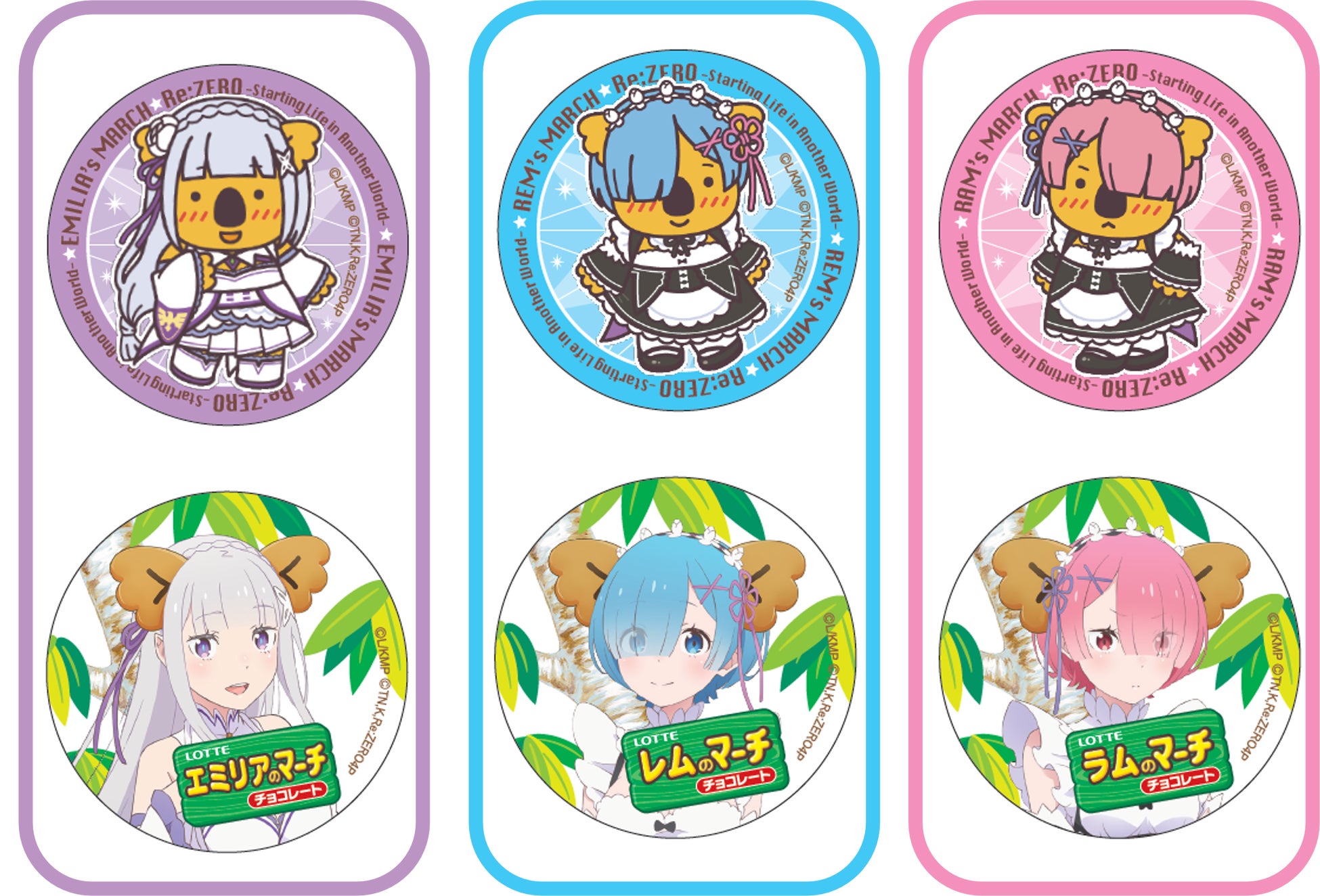 TVアニメ『Re:ゼロから始める異世界生活』のキャラクターがコアラのマーチの耳をつけた特別仕様