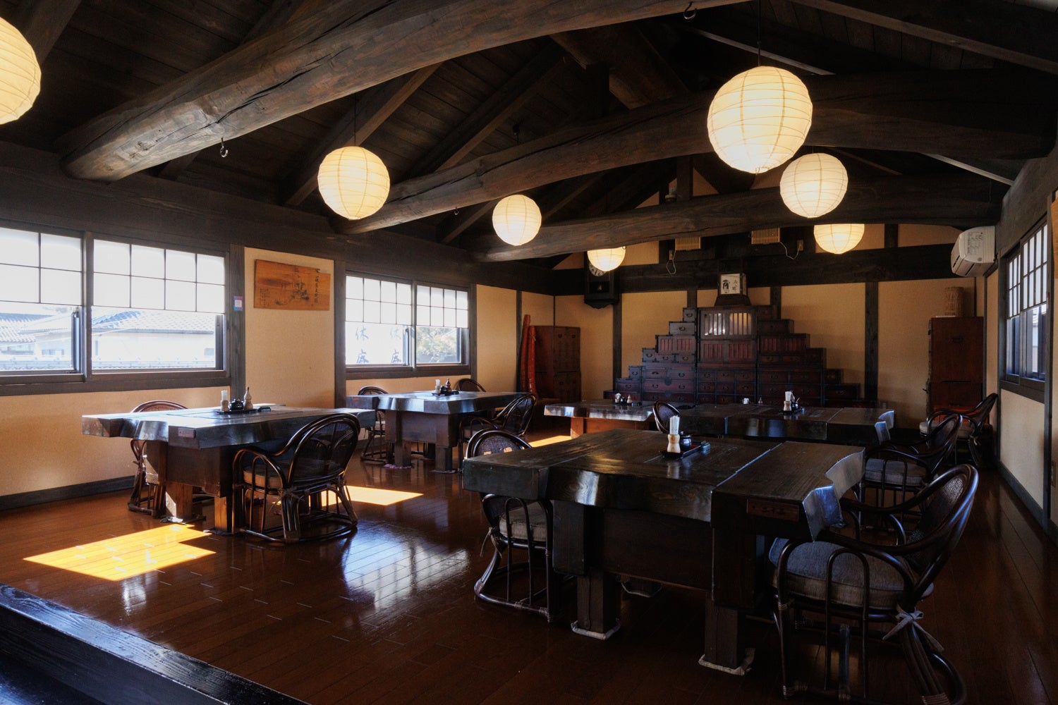 一休庵の建物は、重要伝統的建造物「白壁の町並み」をモチーフにしており、新潟県から建材をすべて丹波篠山へと運び込み、丁寧に再建築したこだわりの古民家です。
