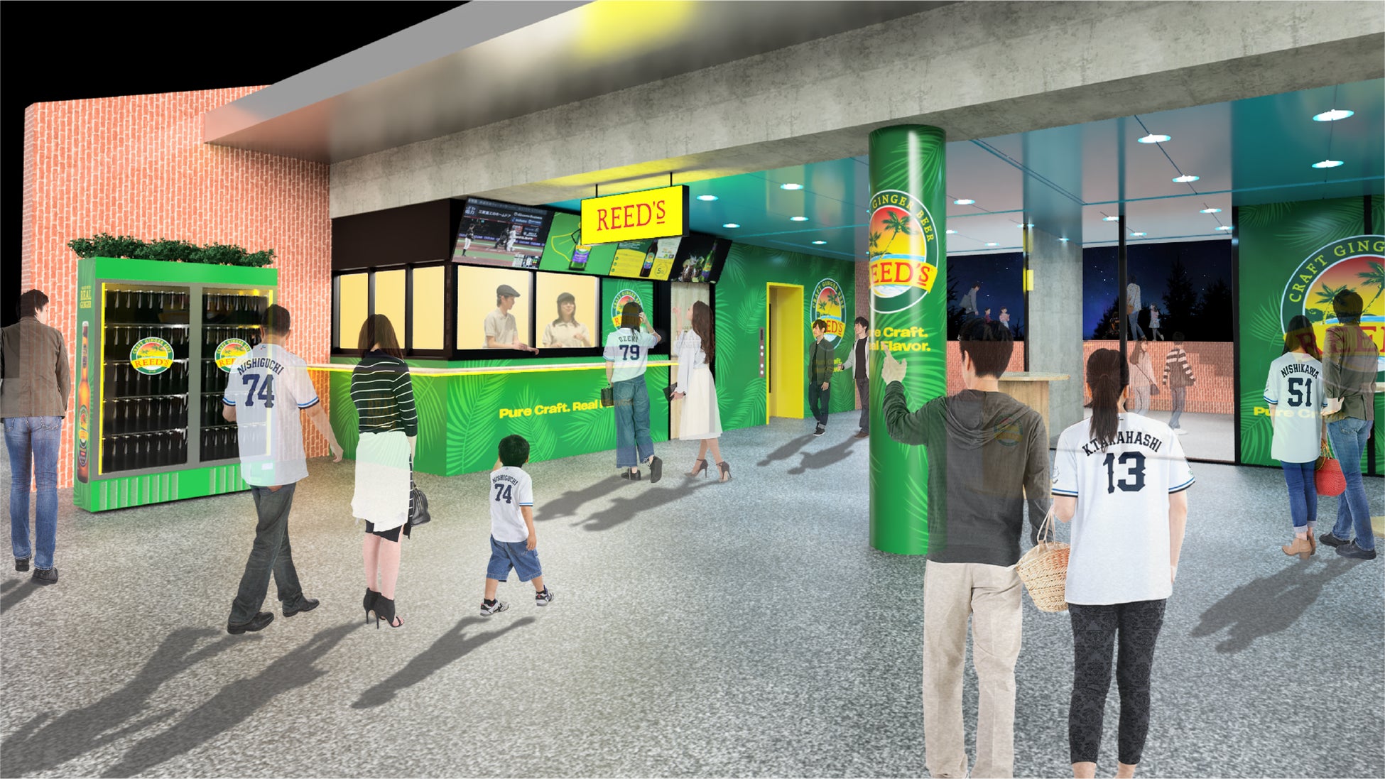 ベルーナドーム3塁側 2F にて、クラフトジンジャードリンクブランド REED’S(リーズ) を楽しめる