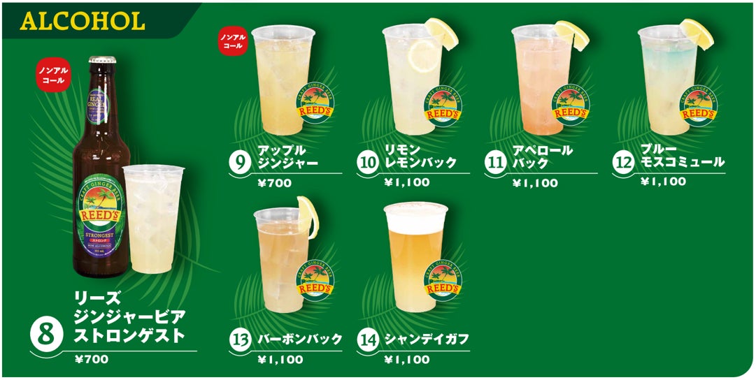 REED’Sの爽快なジンジャーの刺激を活かしたオリジナルメニューを提供します。