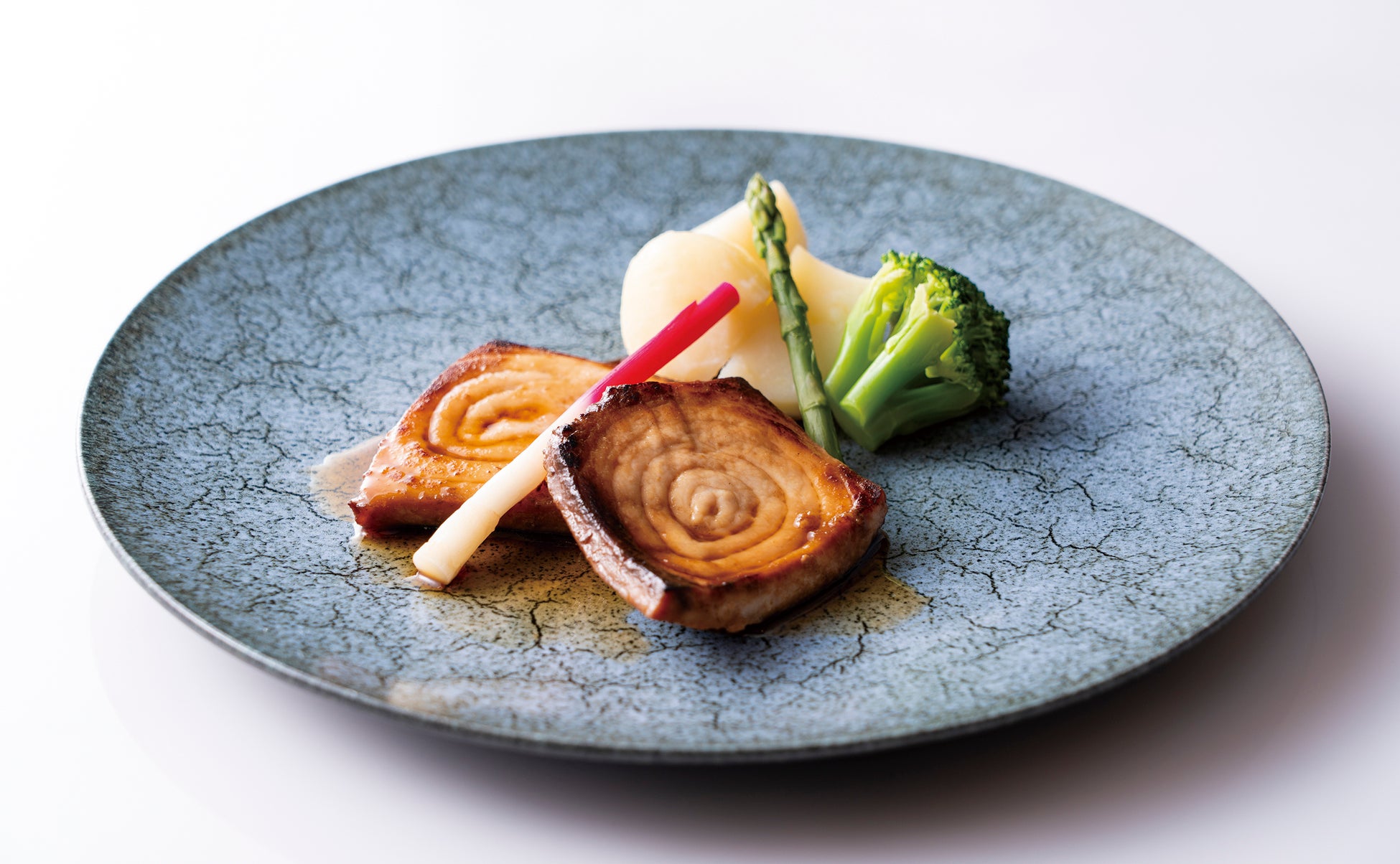 食べやすく仕立てためかじきに甘めの香ばしい照り焼きソースを絡めました。どこか懐かしさを感じる味わいは、世代を問わずご好評をいただいた樹林の定番メニューです。