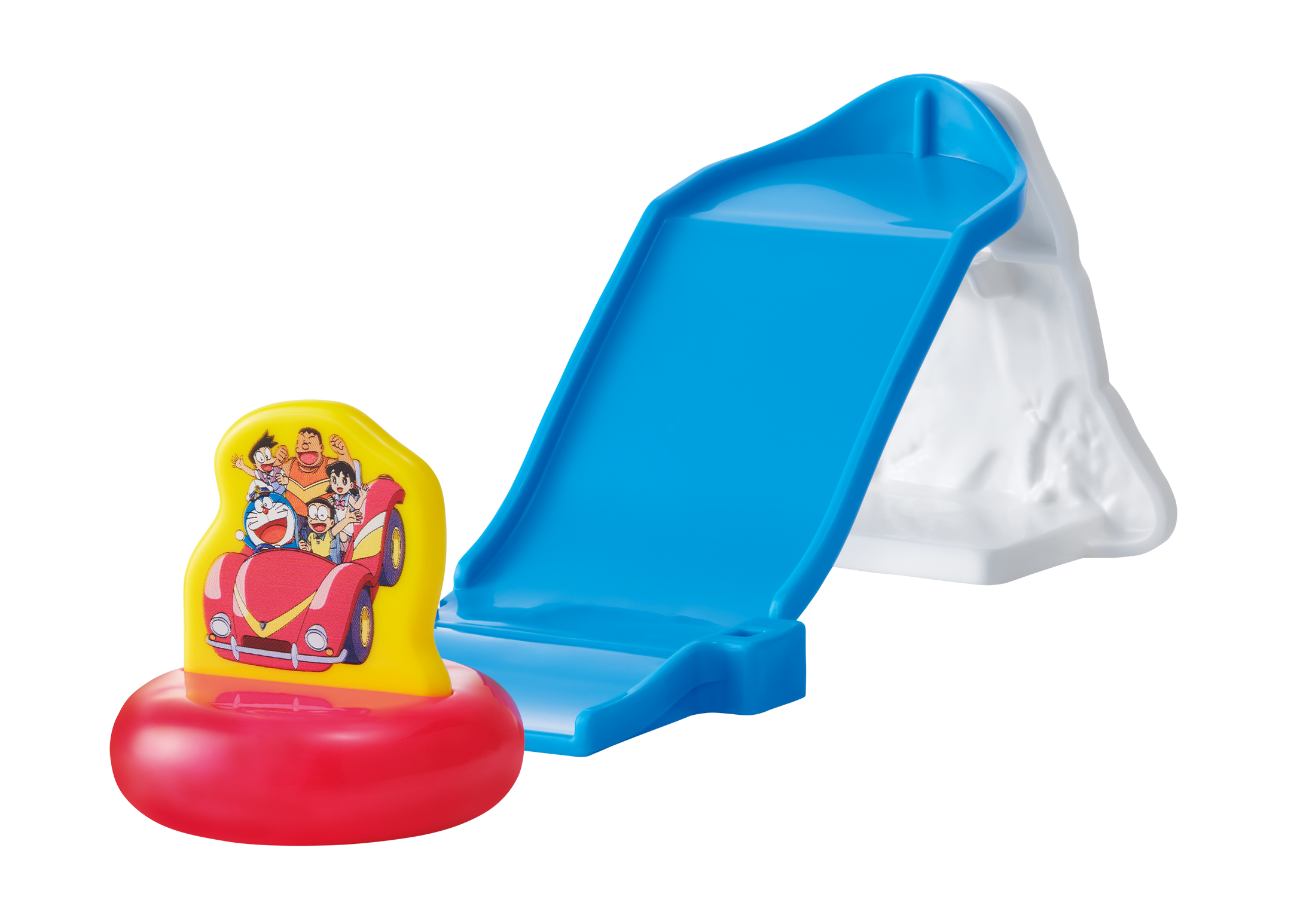 「くるっとカーブ!ドラえもん&バギー」は、ドラえもんの顔の向きを変えることで、バギーの進行方向が変わる仕組みのおもちゃです。おもちゃの形や向きをよく観察し、「どちらに進むかな?」と考えながら遊ぶことで、図形・空間の認識を楽しく育みます。水の性質に触れて学べる「おさえてふしぎ?!オイシーン貝シャワー」は、水の流れ方が変わる仕組みを体験し、学ぶことができます。また、浮力で遊べる「めざせすいめん!ドラえもんとタケコプター」は、水に浮く・沈むといった違い(自然科学)を体験しながら、試して考える力を育みます。「みんなをたすけよう!ドラえもんのディスクすくい」では、海底で活躍するドラえもんやのび太たちの物語を想像しながら水遊びが楽しめます。