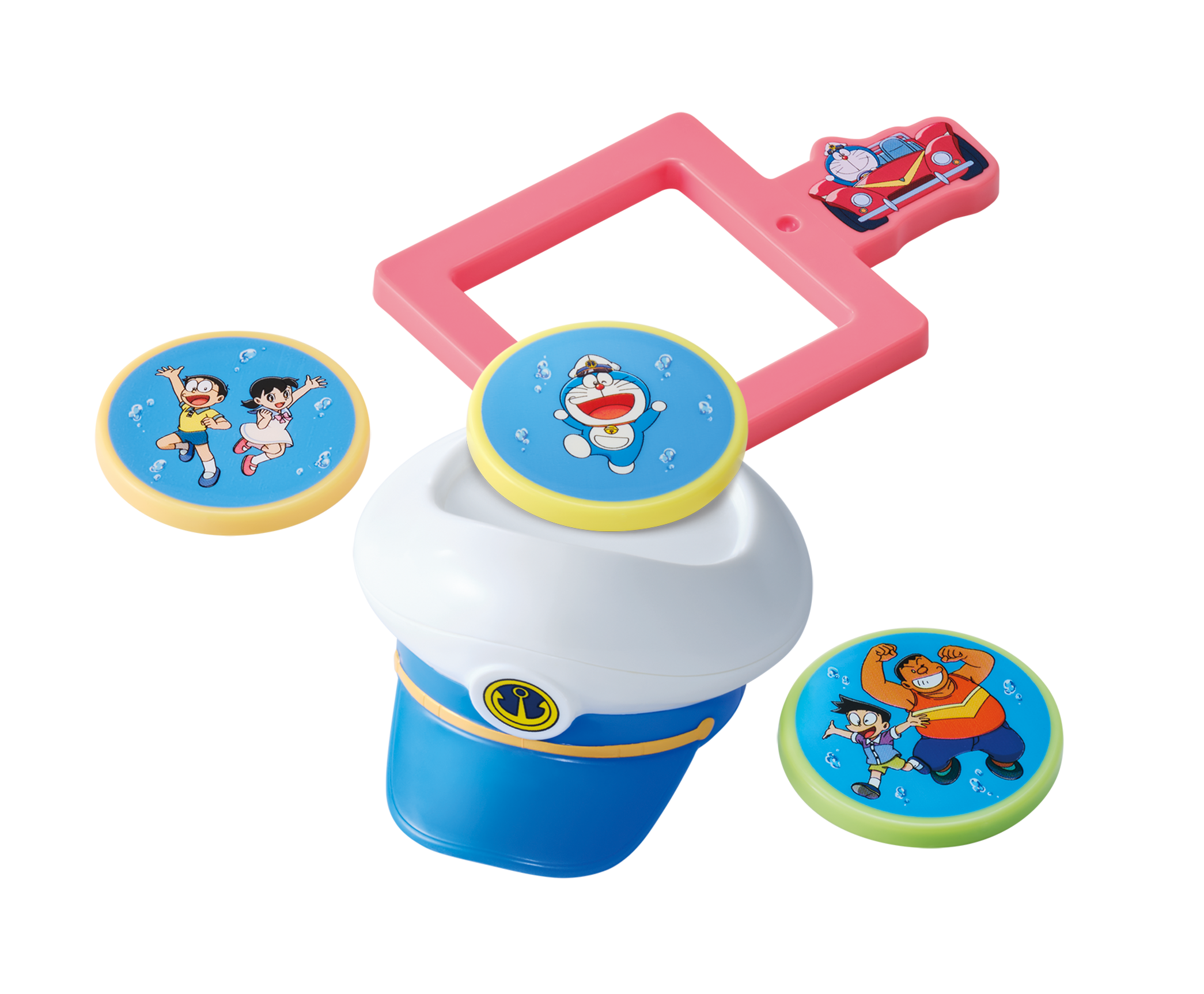 ハッピーセット「ドラえもん」は、2月27日(金)より公開中の『映画ドラえもん 新・のび太の海底鬼岩城』の世界観をモチーフにした、全6種類のおもちゃです。1983年に公開され『映画ドラえもん』シリーズの代表作のひとつとして長く愛されてきた『ドラえもん のび太の海底鬼岩城』。40年以上の時を経て、2026年に『映画ドラえもん 新・のび太の海底鬼岩城』として、新たに生まれ変わり、現在大ヒット上映中です。本作のカギとなる、映画に登場するキャラクター「水中バギー」や、ひみつ道具の「オイシーン貝」「カメレオンぼうし」などをモチーフに、映画の舞台である海底の世界観に合わせた、水遊びやお風呂遊びが楽しめるおもちゃを中心に、さまざまな仕掛けのおもちゃをラインアップしました。
