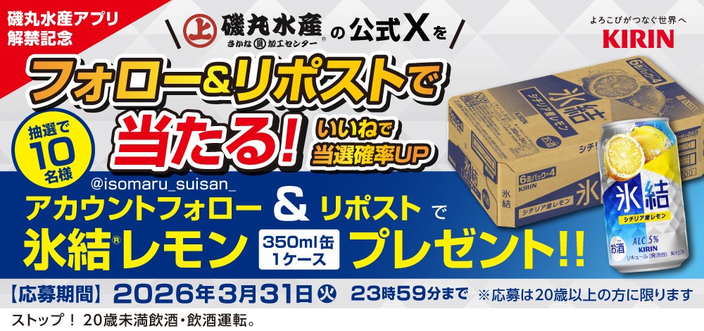 海鮮居酒屋「磯丸水産」をはじめ、多数の飲食店を運営する SFP ホールディングス株式会社(本社:東京都世田谷区 代表取締役社長: 佐藤誠)は、2026年3月16日(月)より「磯丸水産×キリン氷結」アプリ会員限定ルーレットキャンペーン開催」を実施いたします。