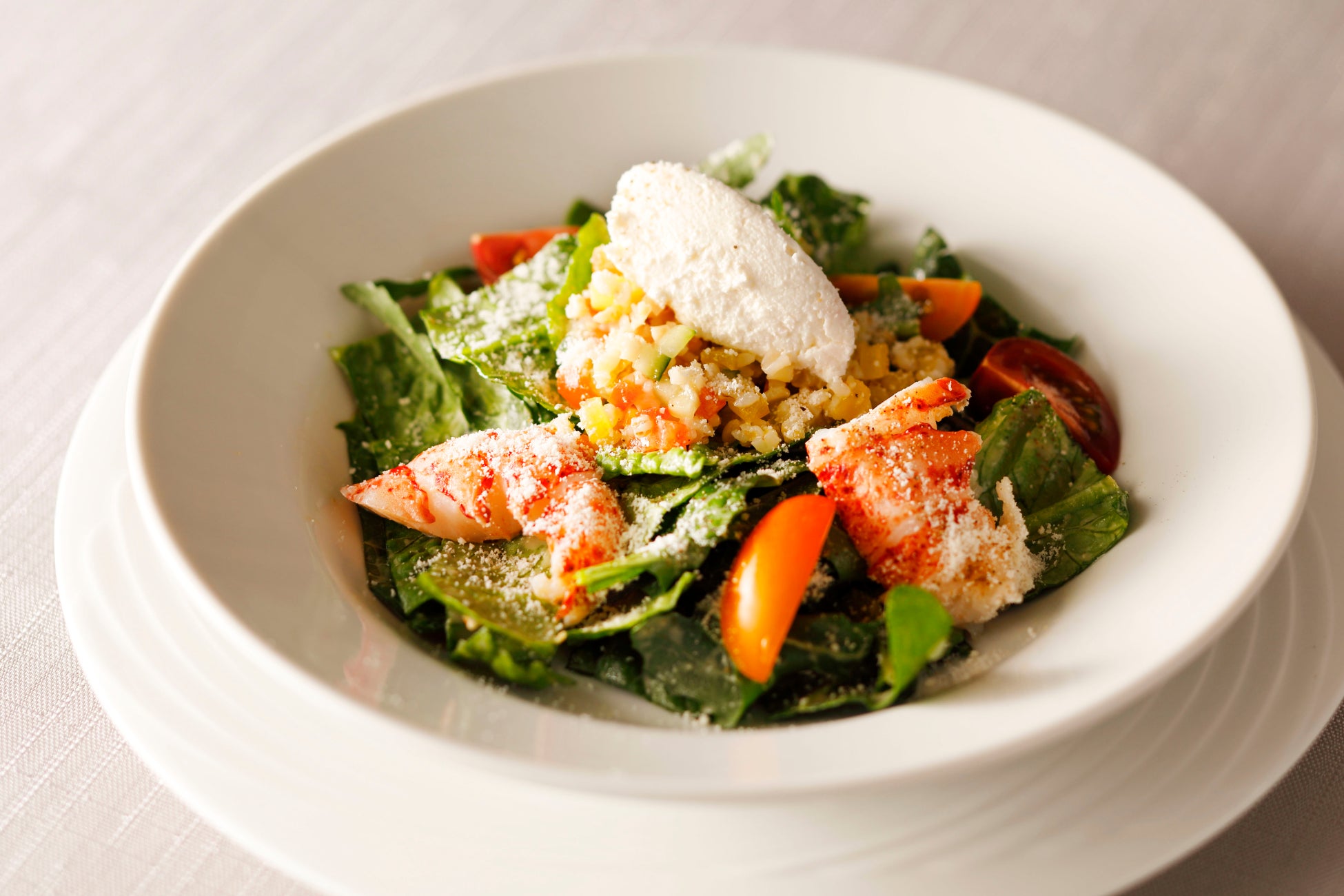 コースの幕開けは、新鮮なマグロの旨みを凝縮したタルタルがお目見え。続くシーザーサラダには、身の引き締まった大ぶりなロブスターを贅沢にトッピングし、スパイシーなアクセントを加えました。