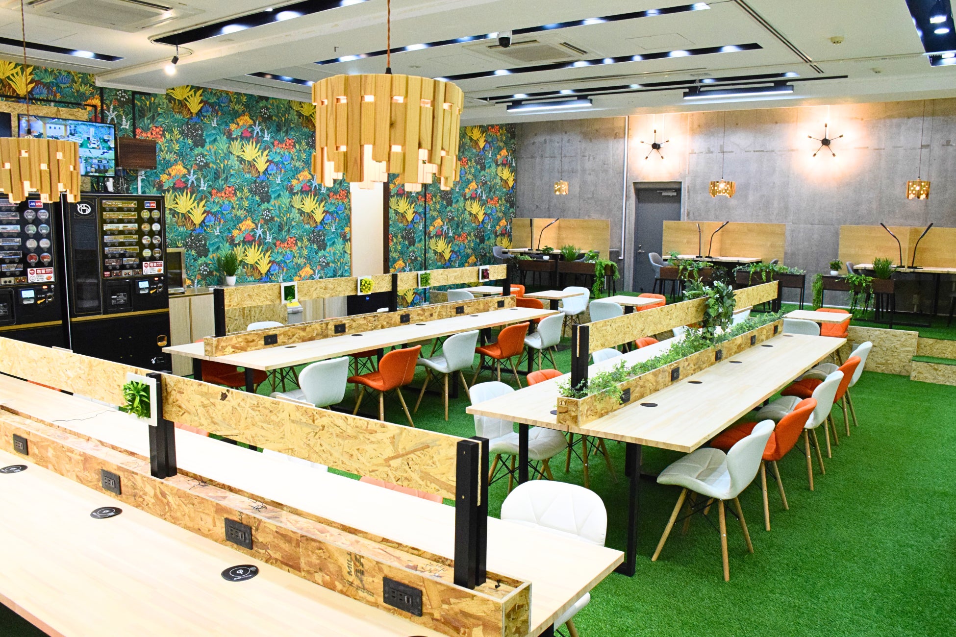 今回公開したセルフカフェ渋谷神南店の店内は、作業や勉強に集中できる落ち着いた空間設計となっています。