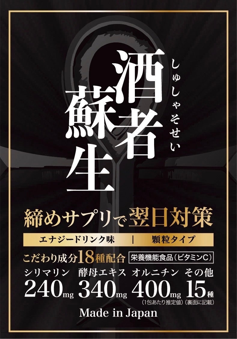 株式会社リナジー(本社:東京都港区、代表取締役:野添祥寛)は、飲み会の“締め”に飲むことを想定した顆粒サプリメント 「酒者蘇生(しゅしゃそせい)」 を、Amazon にて販売開始しました。