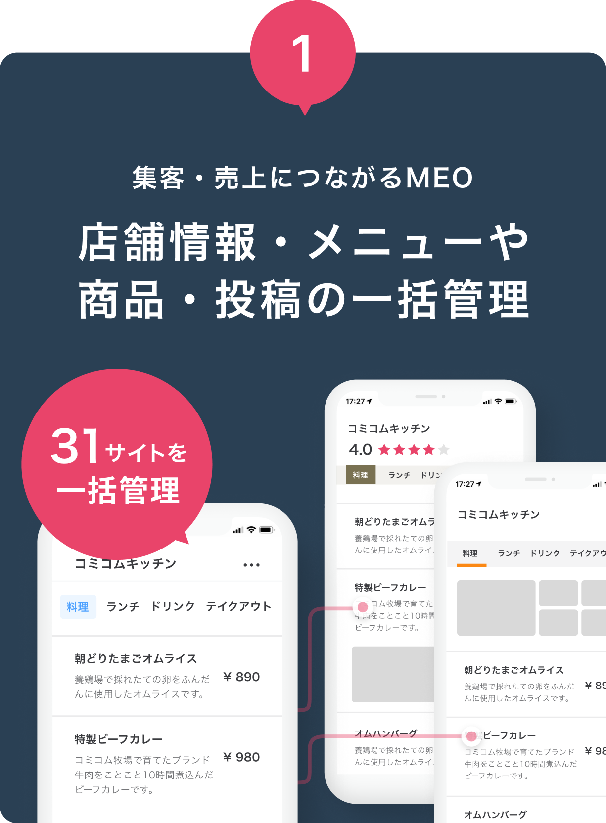 店舗情報・メニューや商品・投稿を一括管理