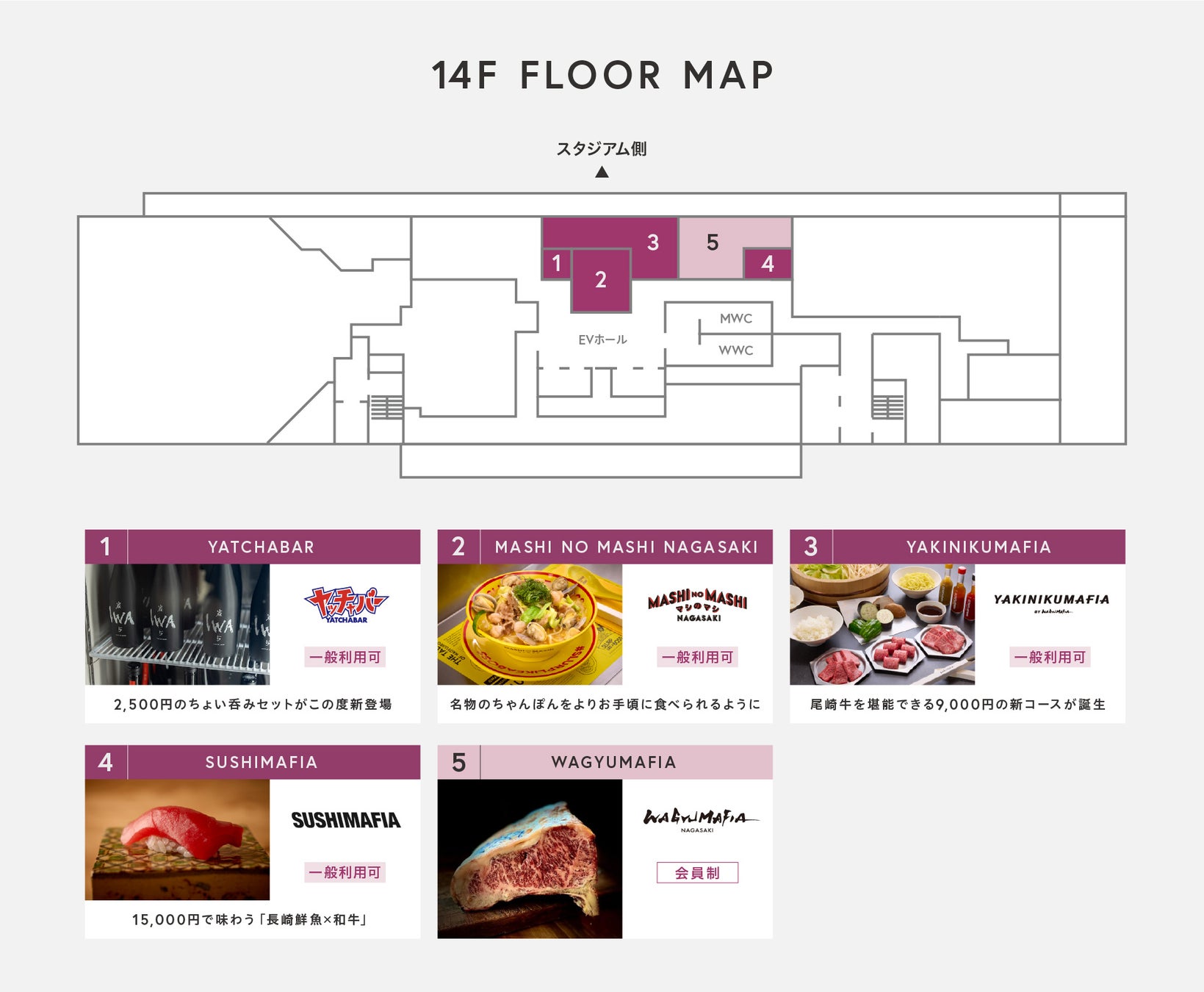 スタジアムシティホテル長崎より、最上階に位置する「WAGYUMAFIA NAGASAKI」グループ各店舗の最新情報をお知らせいたします。