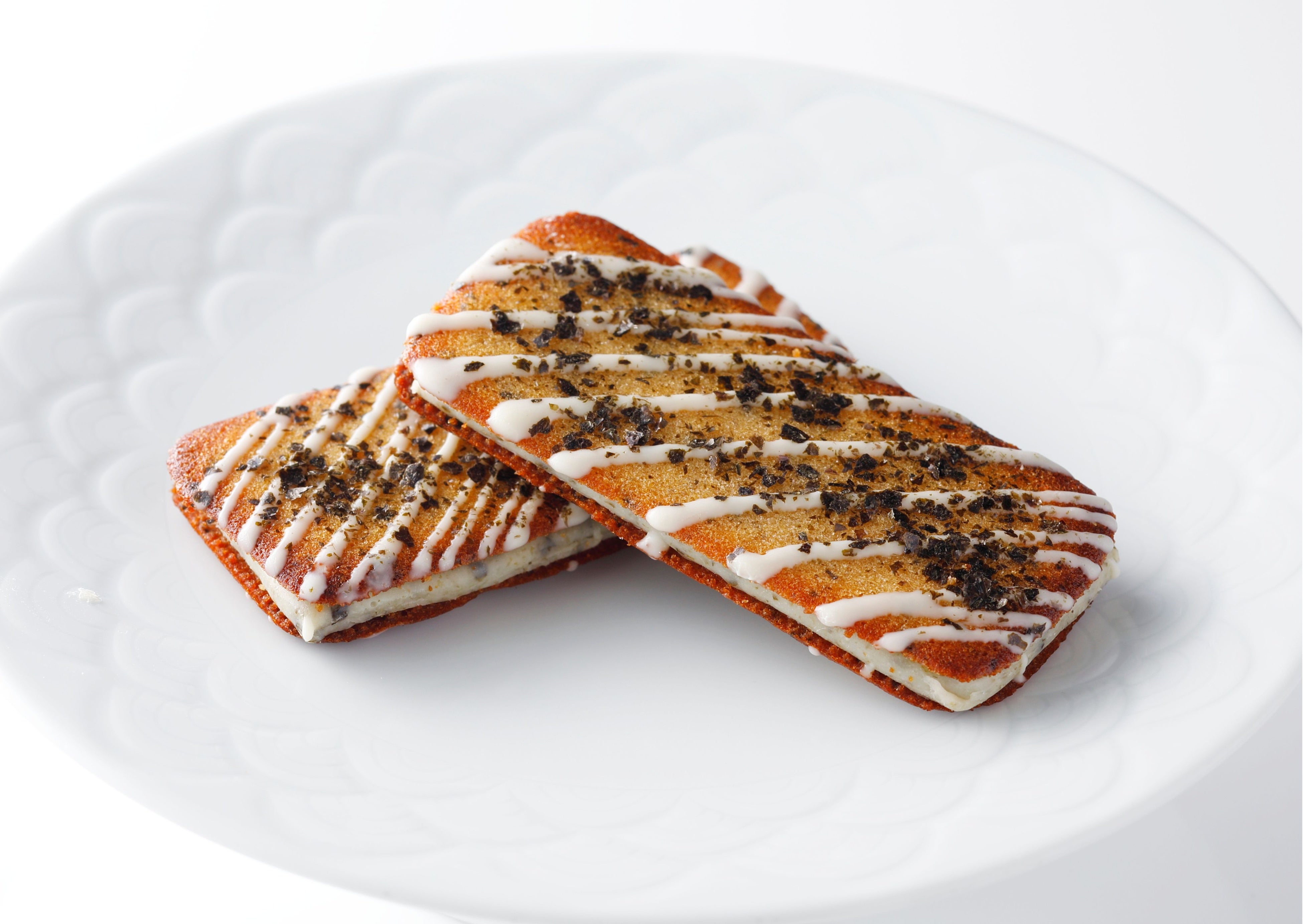 「江戸前ちば海苔」と、香り高い「下総醤油」の旨味を生地に練り込んだ和テイストのラングドシャ。サクッと軽やかな食感のクッキーに、海苔の風味を移したホワイトチョコレートガナッシュをサンドしました。海苔の豊かな香りと醤油のほのかな塩味がチョコレートの甘さを引き立てる、甘じょっぱい味わいが魅力の一品です。