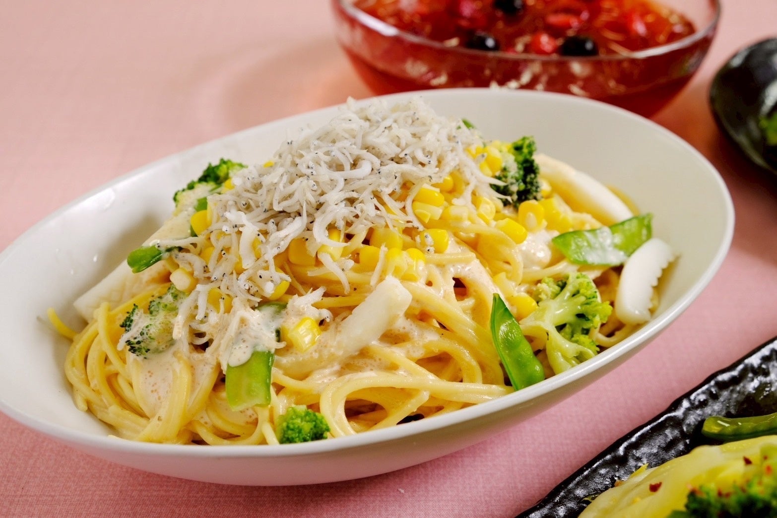 しらすの旨みと、やわらかな食感のイカを合わせ、明太子とチーズのコク深いクリームソースで仕上げた贅沢なパスタです。
