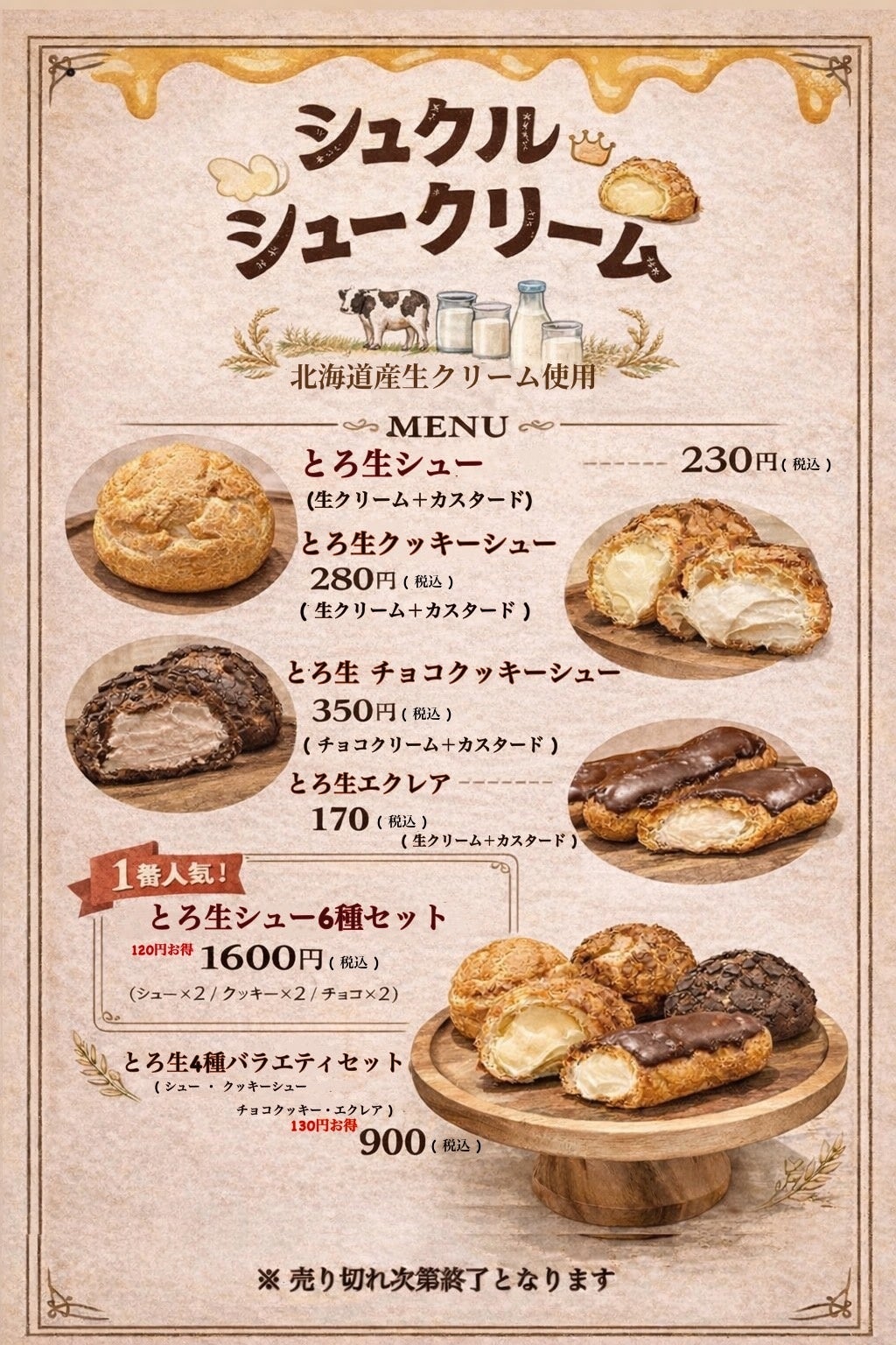 毎日焼きたてで提供するシュークリームは、1日200個以上を販売し、オープン以来すべての営業日で完売。営業開始前から列ができる日もあり、地域で話題の店舗となっています。