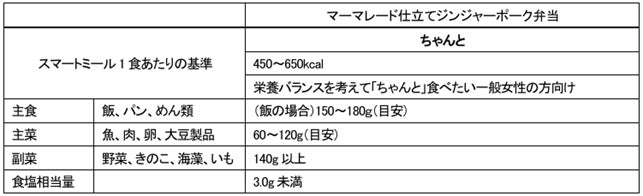 今回発売の弁当は以下のスマートミール基準を満たしています。
