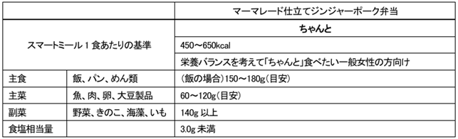 今回発売の弁当は以下のスマートミール基準を満たしています。