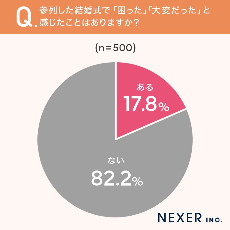■17.8%が、参列した結婚式で「困った」「大変だった」と感じたことが「ある」と回答