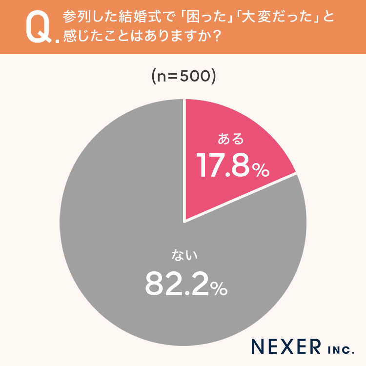 ■17.8%が、参列した結婚式で「困った」「大変だった」と感じたことが「ある」と回答