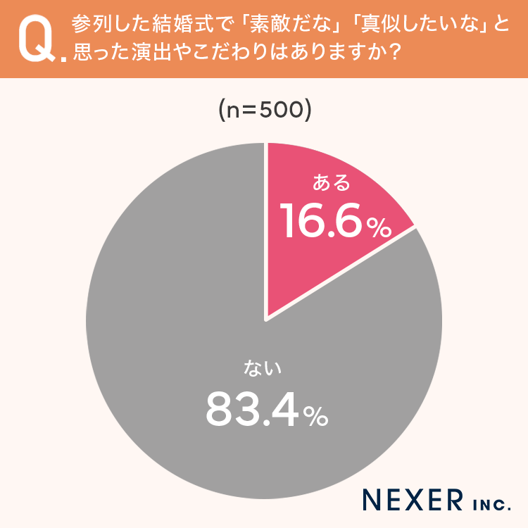 ■16.6%が「素敵だな」「真似したいな」と思った演出やこだわりが「ある」と回答