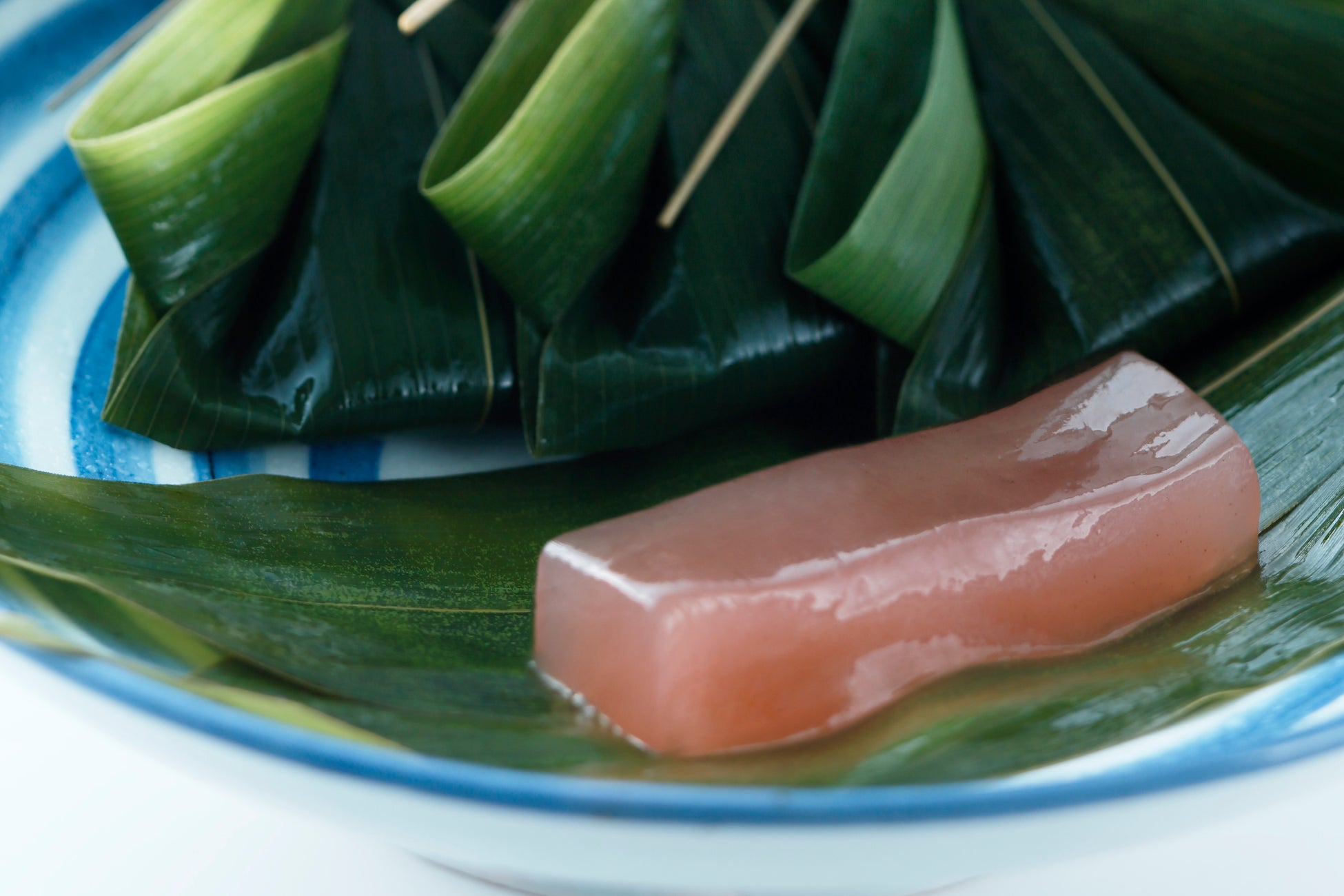 じっくり炊き上げた国産小豆の水羊羹に、ほんのり桜色に染めた道明寺を散りばめました。別添えの桜葉を添えることで、香りがより引き立ちます。