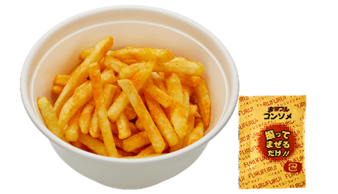 「かっぱの丼ふりポテト」は、丼や専用の袋に店内で揚げたアツアツのフライドポテトとパウダーを入れ、お客様ご自身でふりふりと振って味付けをして仕上げるポテト商品です。ご自身で味付けする楽しさから、おこさまから大人までご好評をいただいています。
