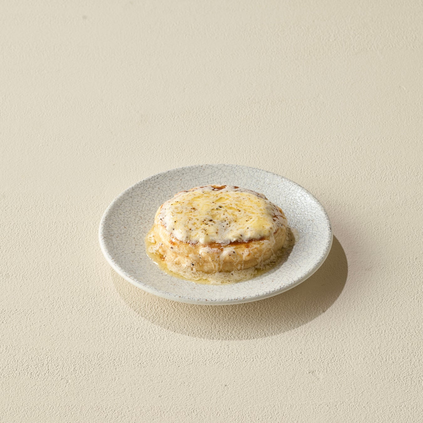 店内には、パンケーキが一枚ずつ丁寧に焼き上がる様子を目の前で楽しむことができる、ライブ感たっぷりな「パンケーキバー」をご用意。鉄板の上で生地がふわっとふくらみ、焼き色がついていく音、香ばしい香りが広がるライブ感と、できたてのパンケーキが味わえます。パンケーキは一枚から注文可能。素材の味をシンプルに楽しむのはもちろん、ベーコンに目玉焼き、ホイップクリームにチョコレートソースなど、お好みのトッピングとの組み合わせもおすすめです。さらに、目の前でバーナーを使って仕上げるトリュフバターパンケーキやブリュレパンケーキなど、多彩なメニューをご用意しています。