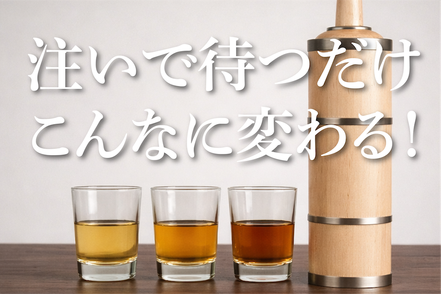 特許出願中の特殊な内部構造により、短期間で熟成感を味わえる製品となっております。本物ウイスキー熟成に使われる樽材を採用。家庭でも、注ぐだけでプロの味を実現できます。