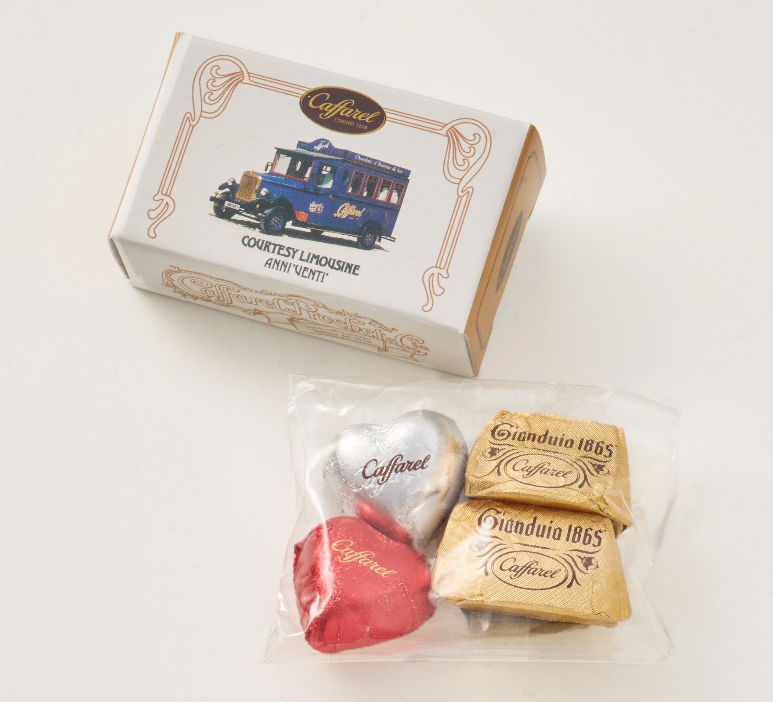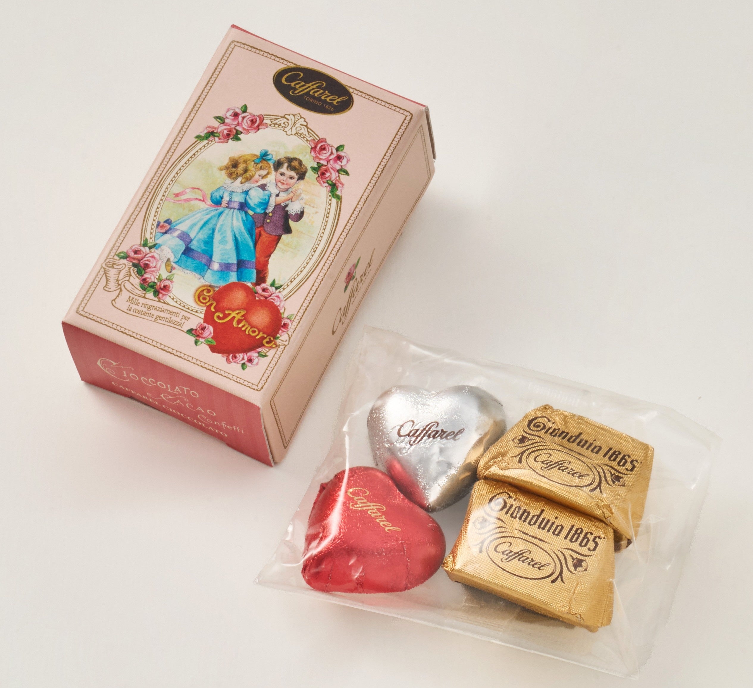 ・商品説明:カファレル人気のイラストが描かれた、選ぶ楽しさいっぱいのプチボックス。全部でデザインは9種類。中にはミニジャンドゥーヤ2粒、ミニハート1粒、ミニハートダーク1粒、計4粒をアソート。