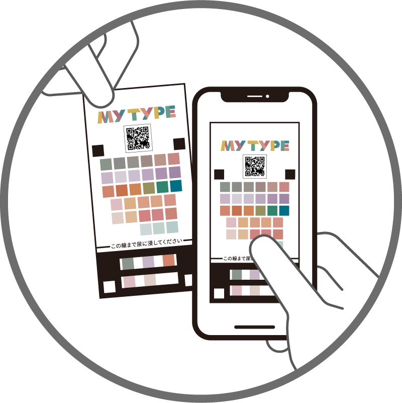 簡易尿検査キット「MY TYPE」と専用のアプリを連動させることで、「栄養タイプ」と「栄養バランス」を約1分で判定します。