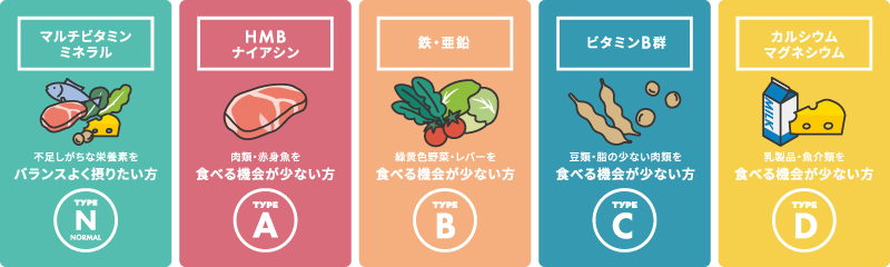 栄養改善に最適な5つのタイプで表示