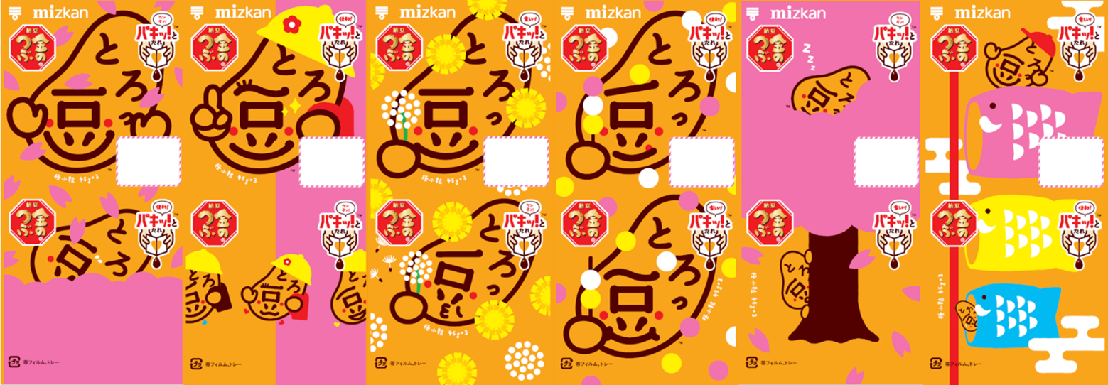 2025年末から2026年初頭に発売した「新春パッケージ」に続き、このたび「春パッケージ」を発売します。桜や入学式、たんぽぽなど春の風物詩をモチーフに、「とろっ豆」が春を楽しむ様子を描いたデザインで、季節の訪れを感じていただけるパッケージに仕上げました。