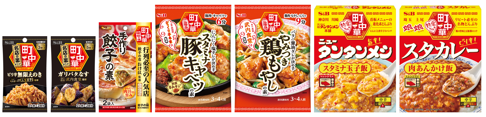 シーズニングから合わせ調味料、レトルトどんぶりまで幅広い商品展開で、町中華の世界観をお楽しみいただけます。
