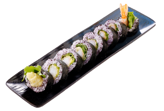 特大サイズのブラックタイガーを贅沢に使用した食べ応えのある巻き寿司です。しゃりには紫蘇をまぜこみ、海老の旨みとともに爽やかな風味が広がります。大ぶりの海老ならではの食感と、紫蘇のさっぱりした風味が調和した、満足感のある一品です。