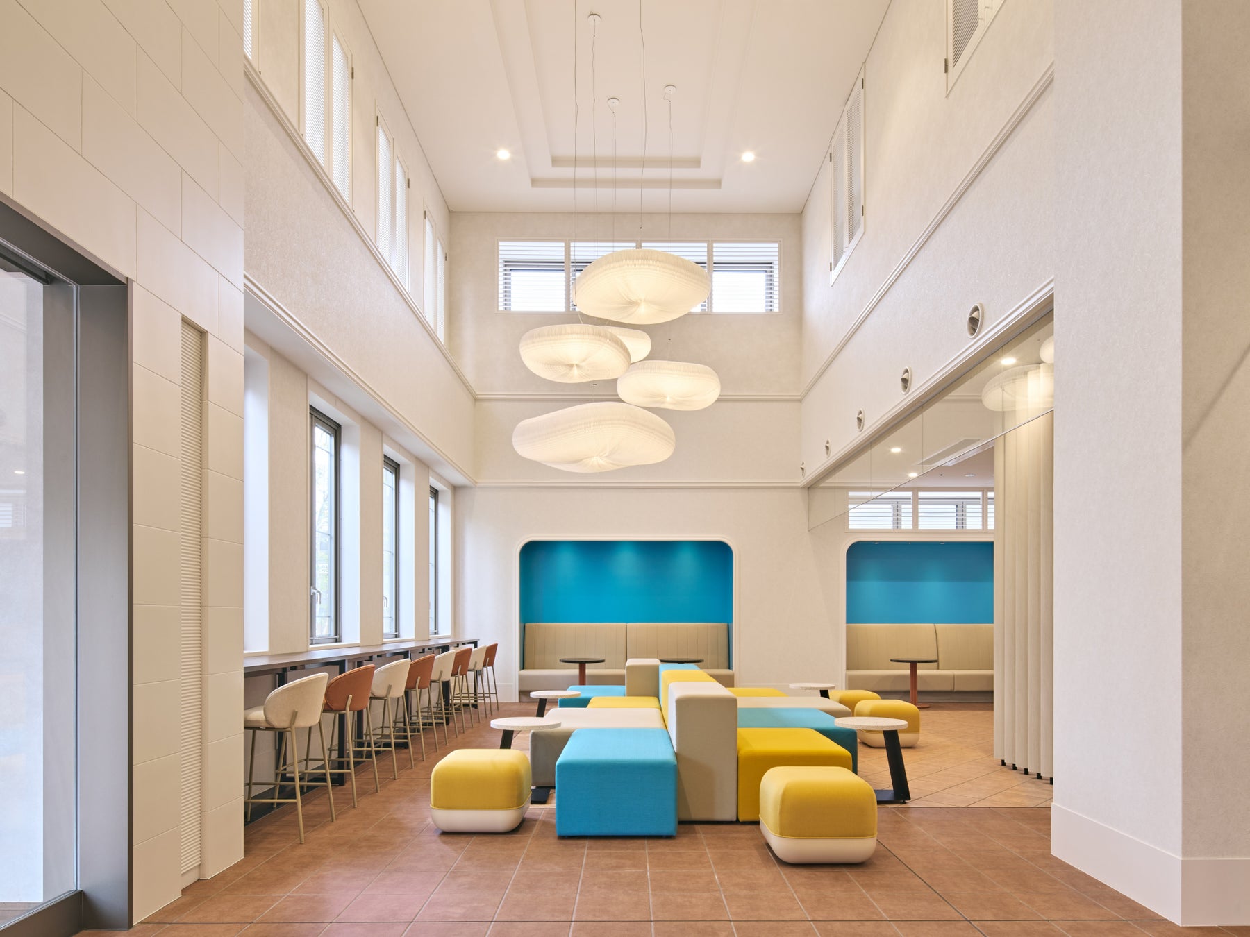 館内には、滞在スタイルに合わせて自由に過ごせるオープンで多目的な共用スペースを多数設けており、街を散策した後にリラックスしたり、仕事をしたり、交流を楽しんだりと、思い思いの時間を過ごすことができます。広々としたパブリックスペースやダイニングエリアは、さまざまな目的のゲストを快適に迎え入れる空間として設計されています。