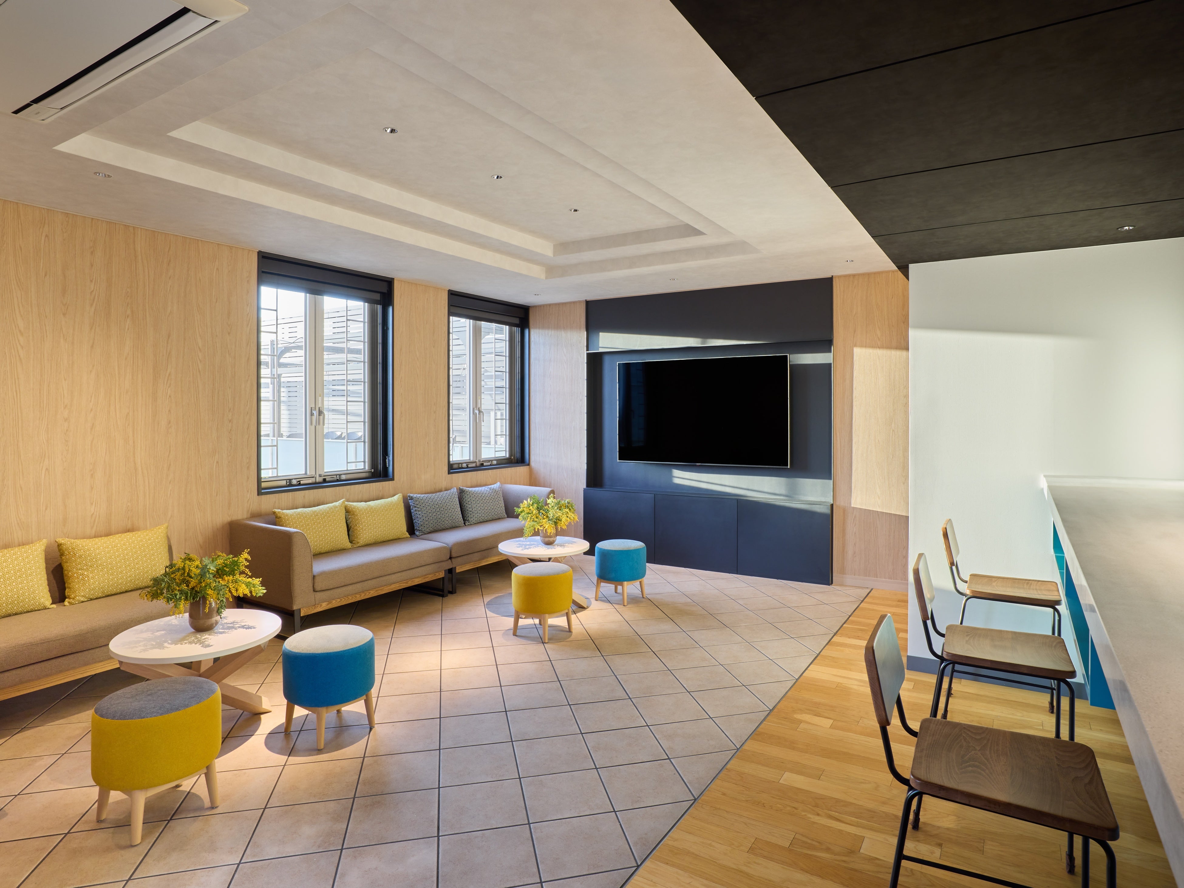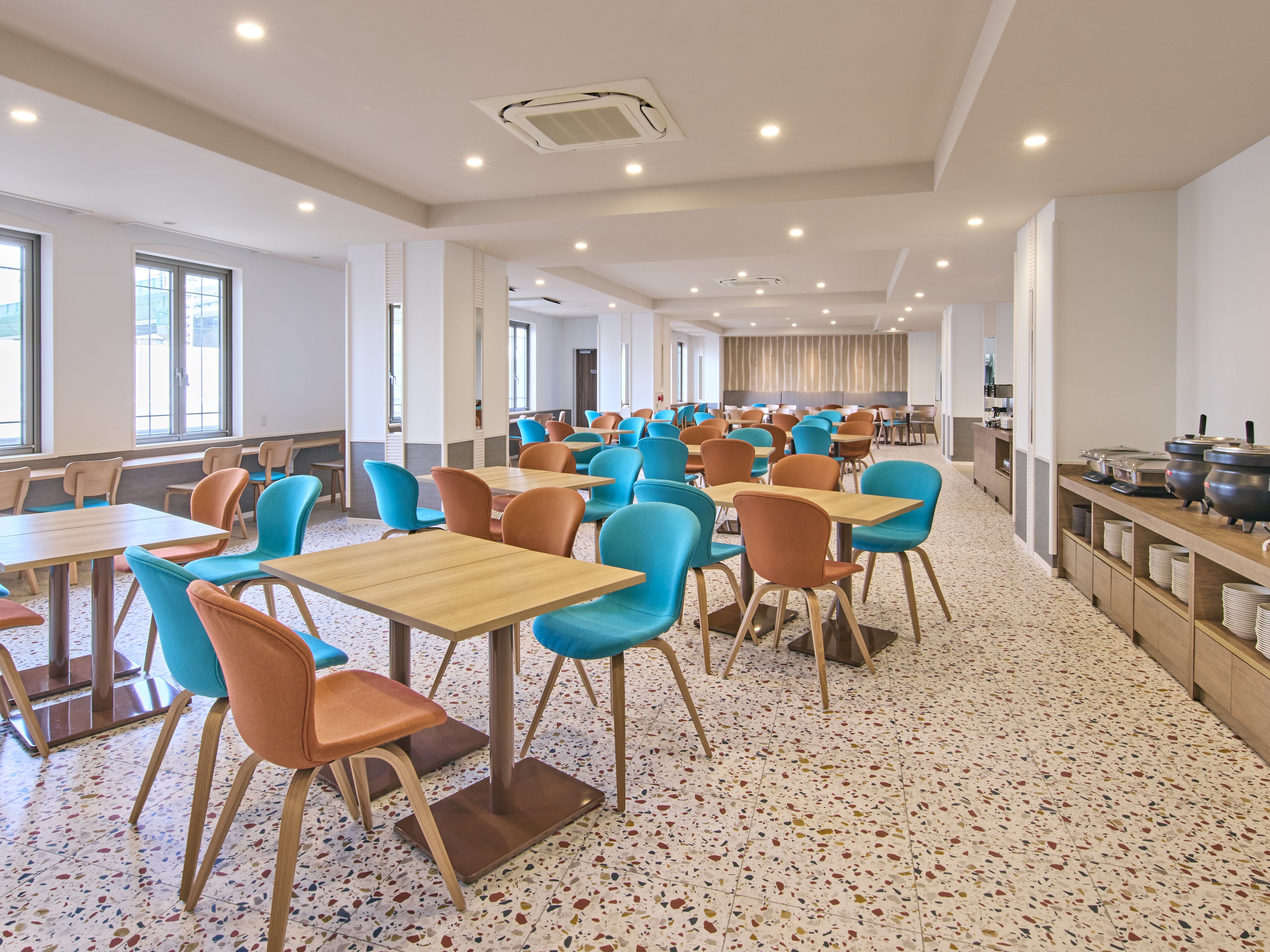 館内には、滞在スタイルに合わせて自由に過ごせるオープンで多目的な共用スペースを多数設けており、街を散策した後にリラックスしたり、仕事をしたり、交流を楽しんだりと、思い思いの時間を過ごすことができます。広々としたパブリックスペースやダイニングエリアは、さまざまな目的のゲストを快適に迎え入れる空間として設計されています。