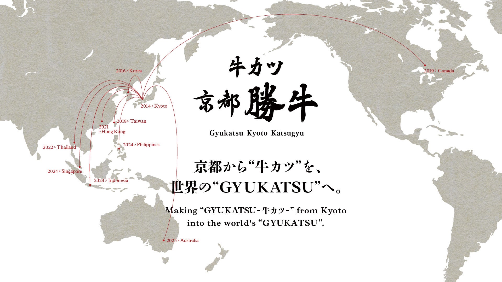 牛カツ京都勝牛は「京都から“牛カツ”を、世界の“GYUKATSU”へ。」をブランドミッションに掲げ、「寿司-SUSHI-」「天ぷら-TEMPURA-」「ラーメン-RAMEN-」のように「牛カツ-GYUKATSU-」が日本食代表として世界中で愛される日を目指し、日本国内のみならず世界を舞台に挑戦を続けています。