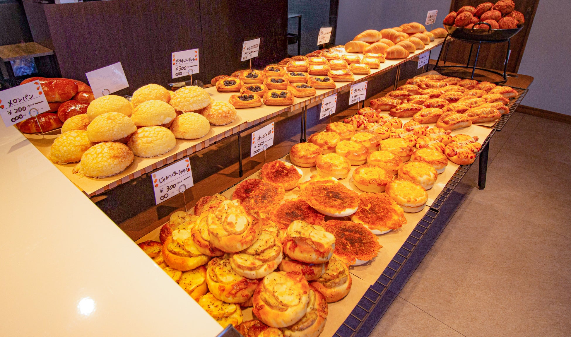 店内には、最大50種類近くの多種多様なパンが並びます。
