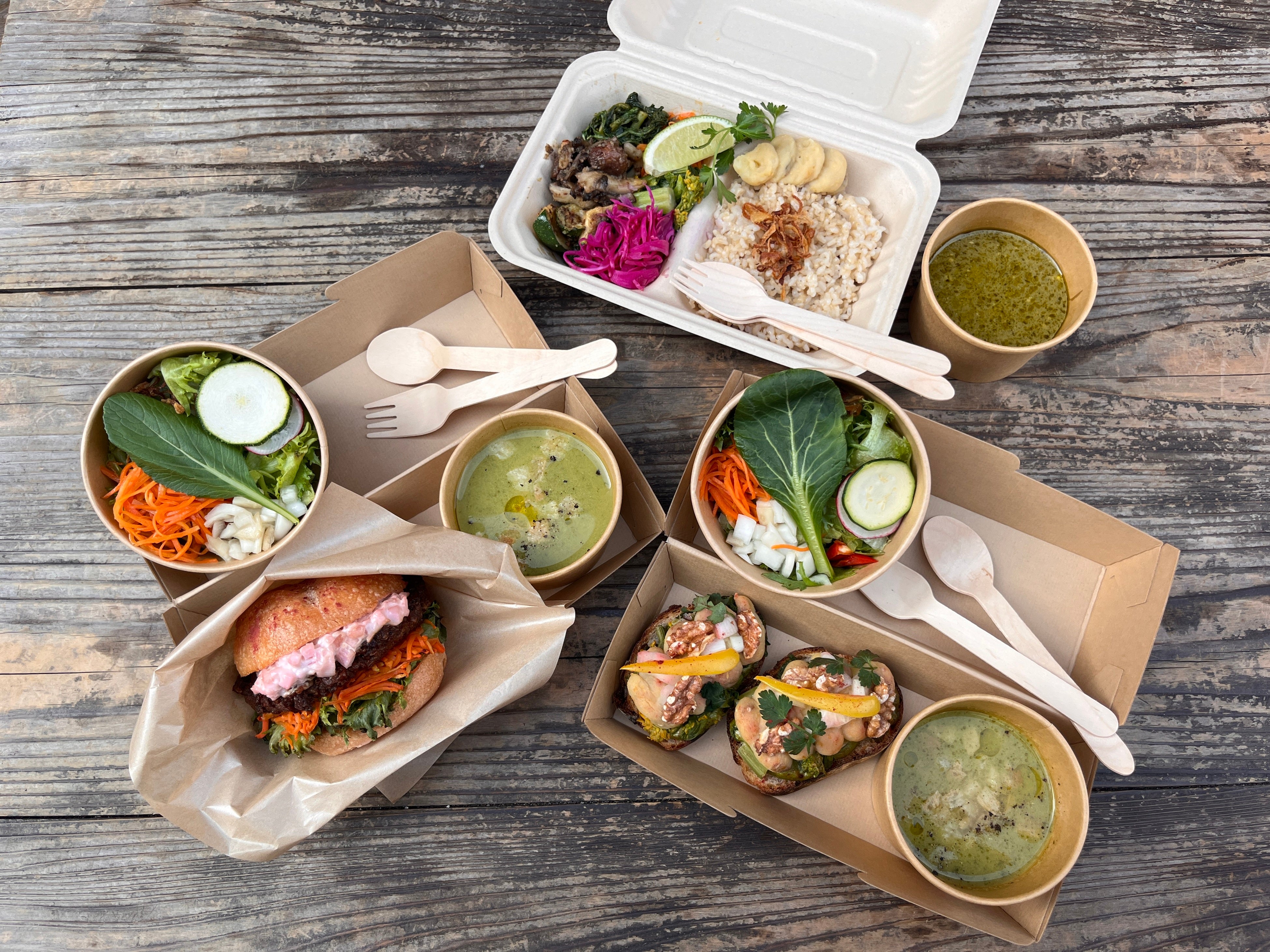 有機農家から直接届く春野菜を使用。「小松菜スパイスカレー」や「菜の花スモーブロー」など、プラントベース・メニューで季節の畑を味わう限定メニュー。