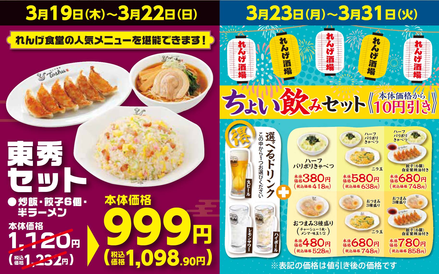 当店では、3月19日(木)から期間限定で、人気メニューがおトクに楽しめるオープン記念セールを実施します。