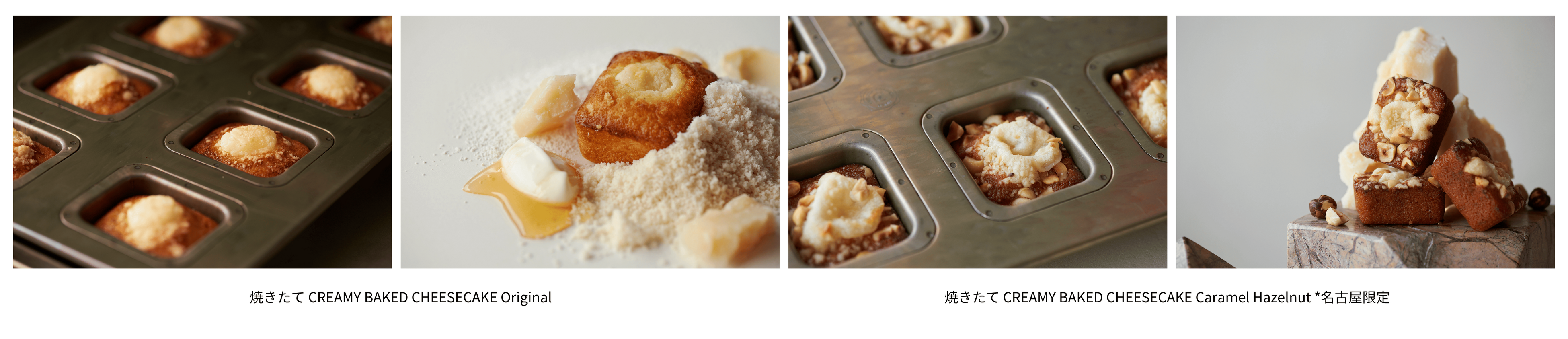 「Mr. CHEESECAKE」からは、西尾抹茶と小豆を組み合わせ、名古屋の地に根付く茶の湯文化や和菓子文化を表現した「Mr. CHEESECAKE Rich Matcha Azuki」が登場します。また、毎日12時に店内で焼き上げた、出来立てのおいしさをお楽しみいただける「焼きたて CREAMY BAKED CHEESECAKE」を販売します。定番の芳醇なチーズの香り漂う「CREAMY BAKED CHEESECAKE Original」と、限定のキャラメルとヘーゼルナッツを使用した香ばしい味わいの「CREAMY BAKED CHEESECAKE Caramel Hazelnut」の2種をご用意します。
