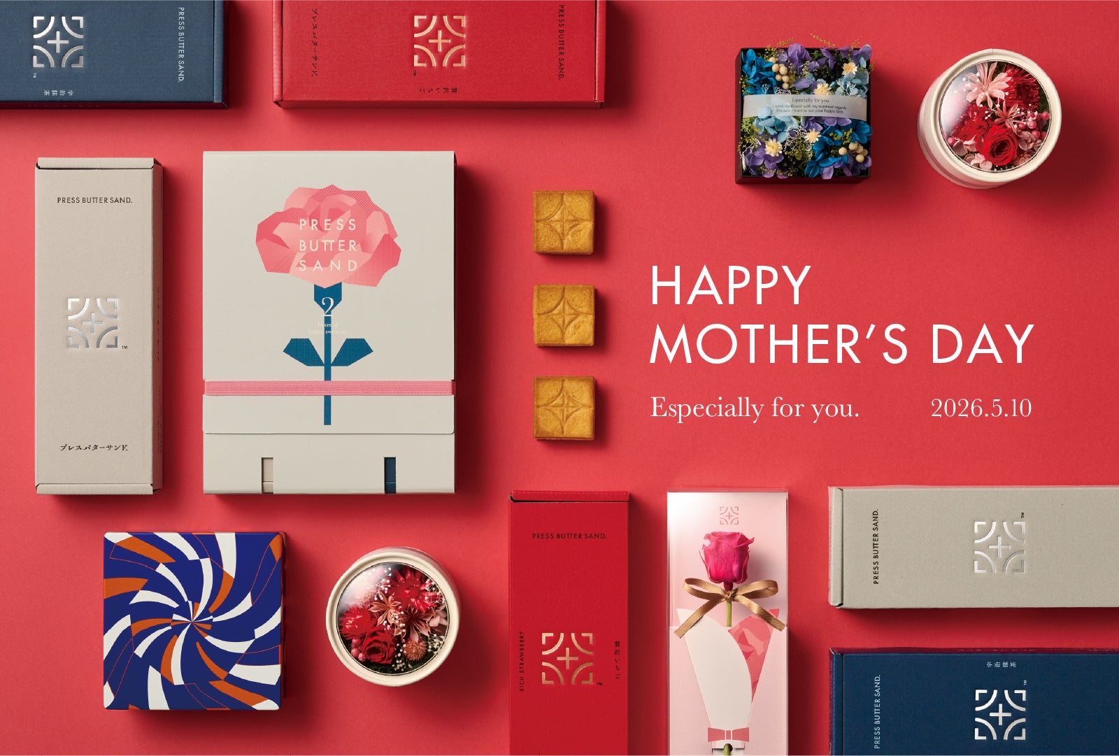 株式会社BAKE(本社:東京都港区、代表取締役社長CEO:山田 純平、以下「BAKE」)は、人気ブランド「PRESS BUTTER SAND」と「しろいし洋菓子店」より、母の日に向けたギフトセットを、2026年4月1日(水)より順次発売いたします。