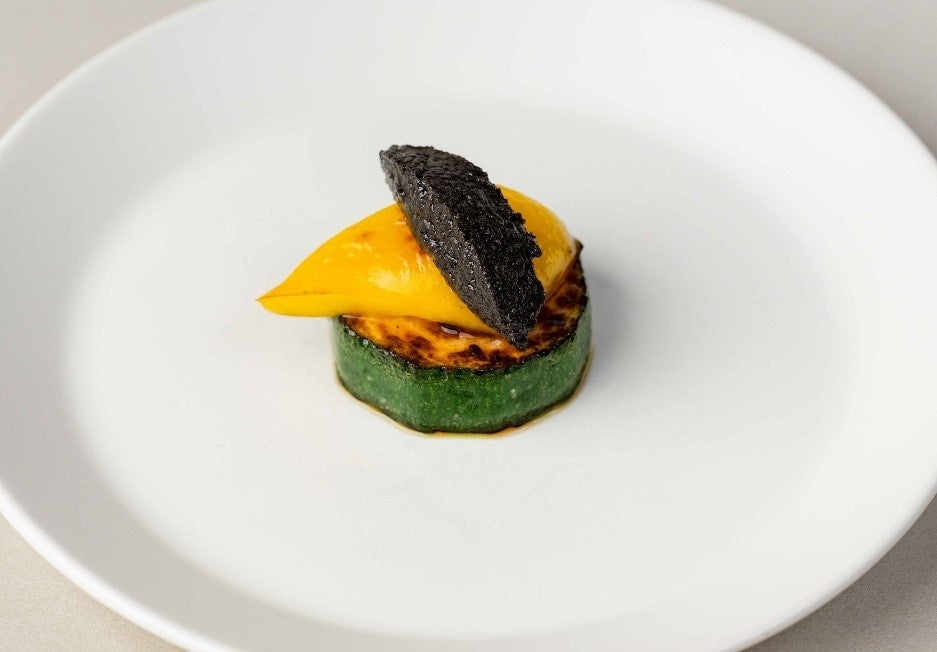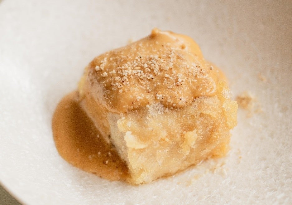 パリッと香ばしいキャラメリゼと、中のなめらかな黒ごまクリームが合わさり、食感まで楽しめるデザート。