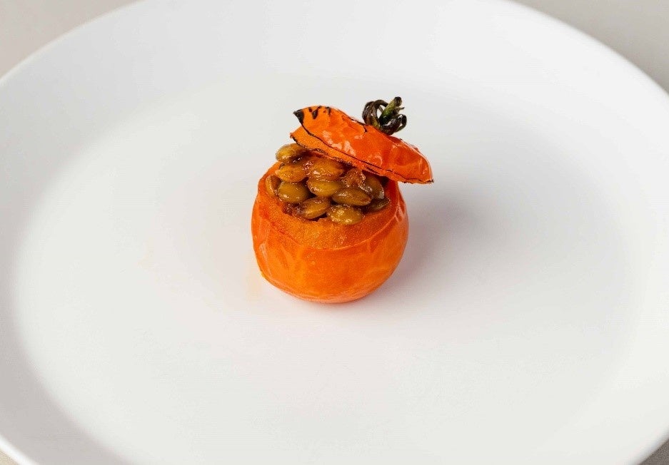 ・レンズ豆の味噌煮を詰めたトマトファルシ