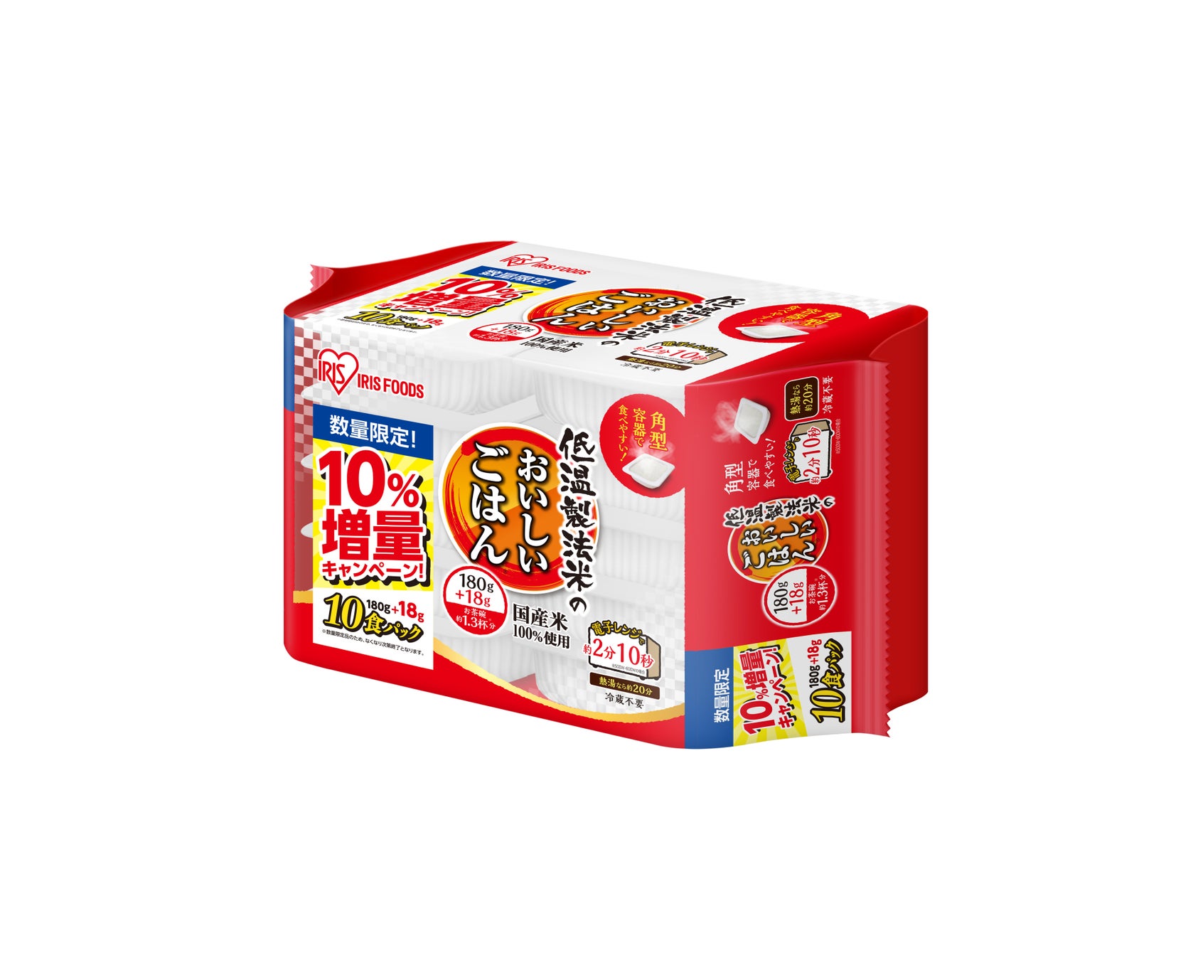 今回のキャンペーンでは、当社の人気商品であるパックごはん「低温製法米のおいしいごはん®」を期間限定で内容量を10%増量し、生活者の暮らしを応援します。なお、アイリスオーヤマ公式通販サイト「アイリスプラザ」では、価格を据え置いたまま(※1)、先んじて2026年3月17日13時より本キャンペーン商品の先行予約販売(※2)を開始します。