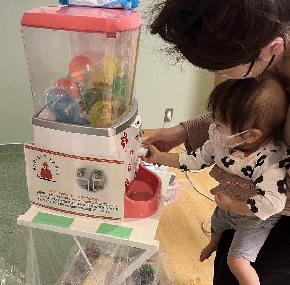 NPO法人プロジェクトサンタは、病院で治療を頑張る子どもたちを応援するため、院内ガチャガチャの設置・運営を行っています。