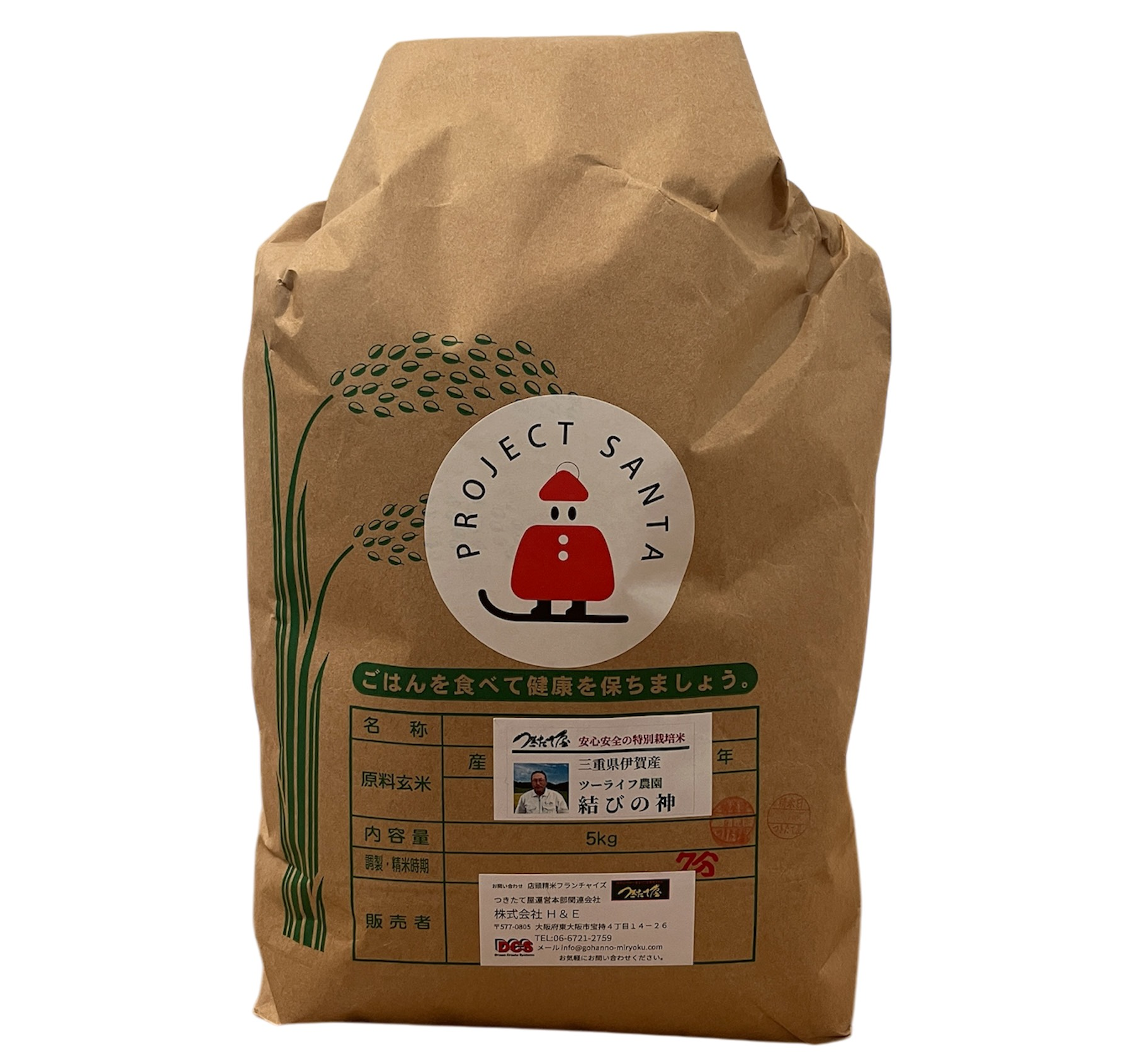このセットには、プロジェクトサンタの取り組みの一つであるチャリティ米「結びの神」も含まれています。