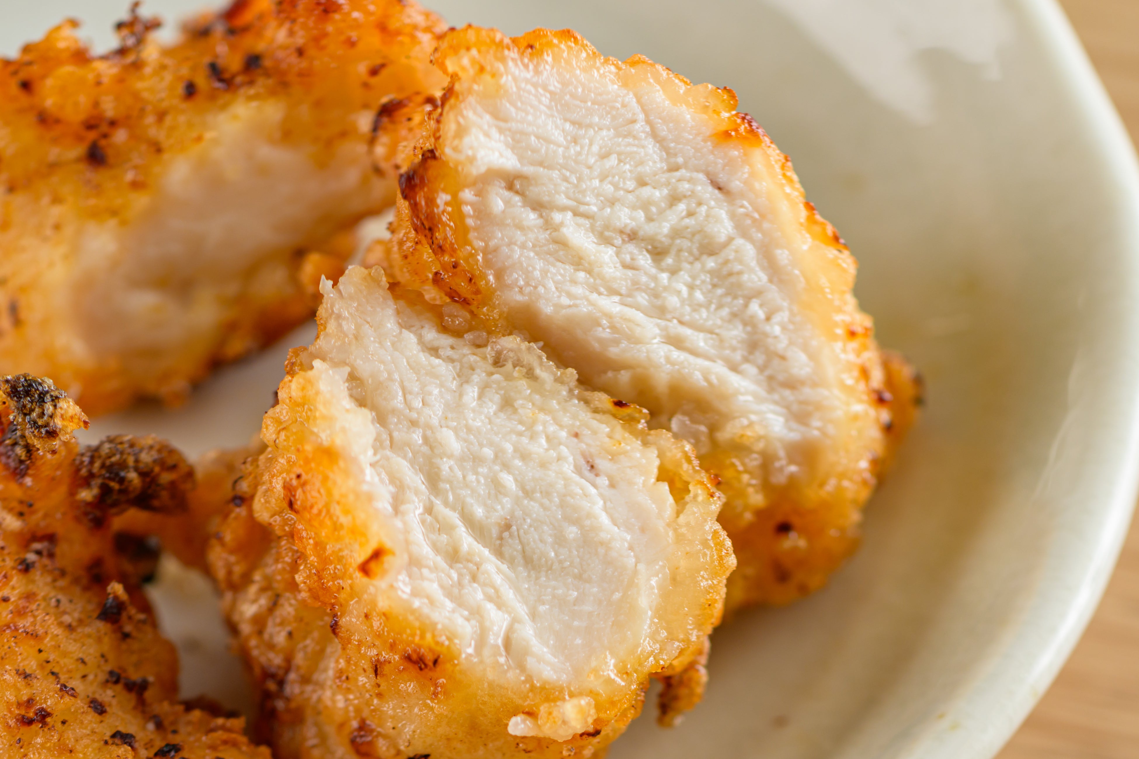 その実力がよく分かるのが、鶏むね肉のから揚げ。鶏肉に「液体塩こうじ」をもみ込み、30分~1時間ほど漬け込んでから揚げるだけで、麹の酵素がたんぱく質を分解して肉がやわらかくしっとりとした仕上がりになります。鶏むね肉でもパサつきにくく、冷めてもやわらかさを保ちやすいので、お弁当のおかずにもぴったりです。