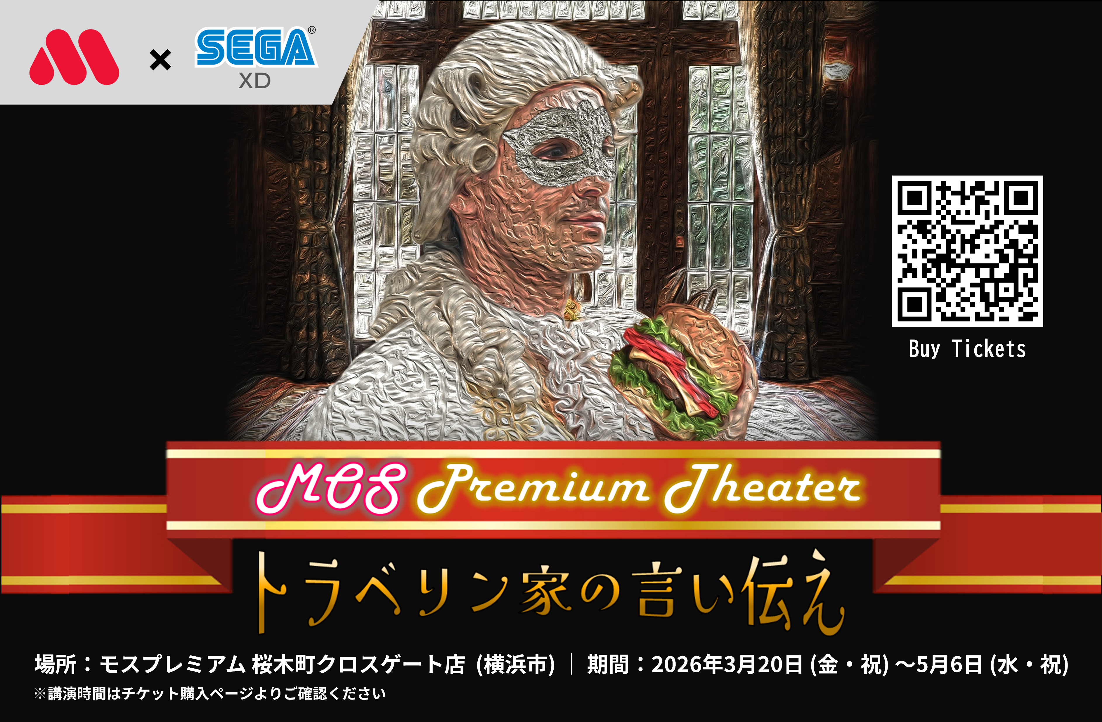 モスバーガーを展開する株式会社モスフードサービス(代表取締役社長:中村 栄輔、本社:東京都品川区)は、株式会社セガ エックスディー(代表取締役 社長執行役員CEO:谷 英高、本社:東京都新宿区)と共同で、2026年3月20日(金・祝)~ 5月6日(水・祝)の期間限定で、「モスプレミアム桜木町クロスゲート店」(神奈川県横浜市)において、謎を解きながら食事を楽しめる没入体験型謎解きレストラン「モスプレミアムシアター トラベリン家の言い伝え」を開催します。