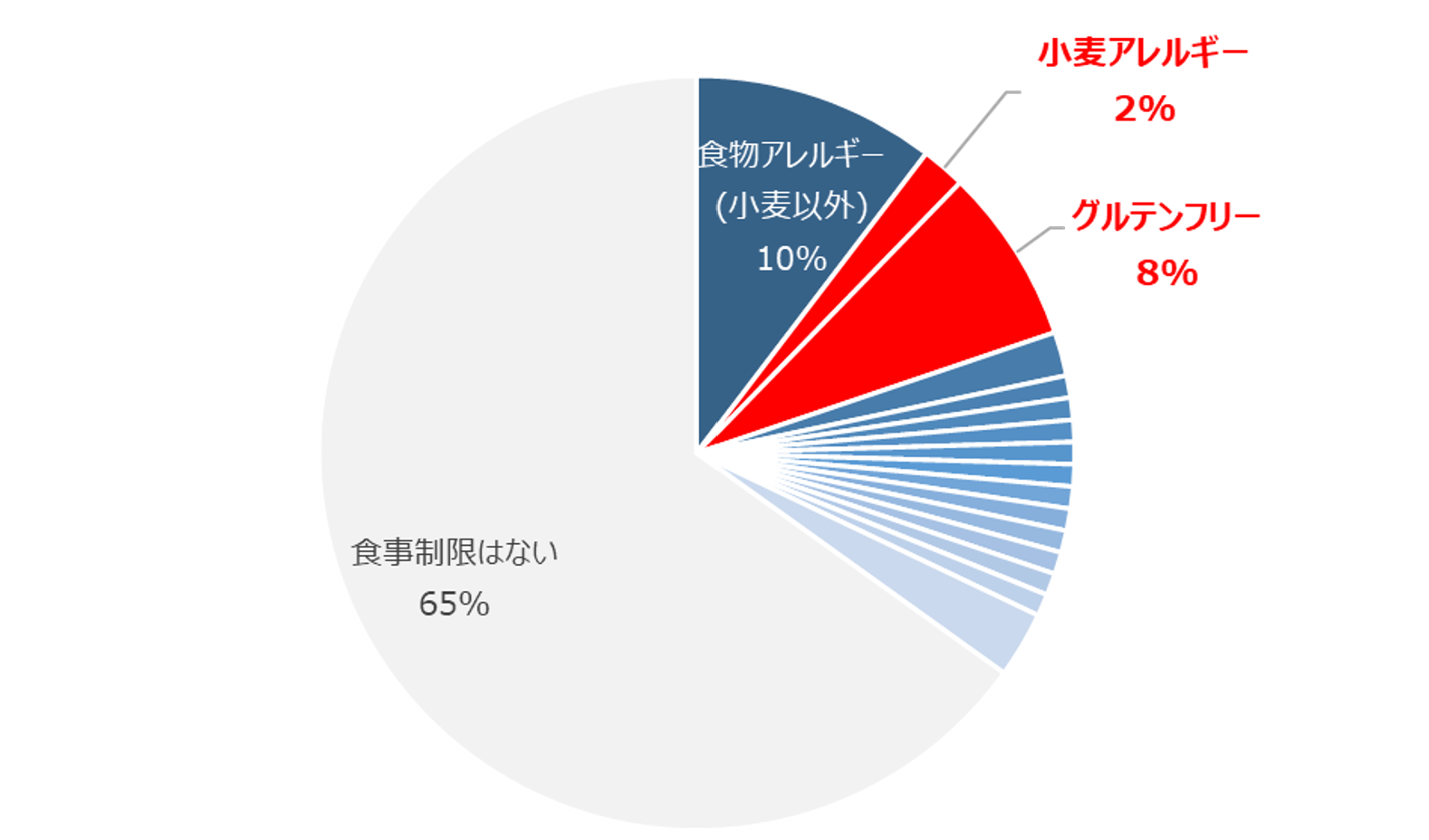また食事制限の内容を調べてみると、小麦などに含まれるグルテンを避けたいと考えている人が全体の10%に上ること(図22)、横浜駅/ベイエリアではグルテンフリーメニューを提供する飲食店を見つけることが困難であることがわかりました。